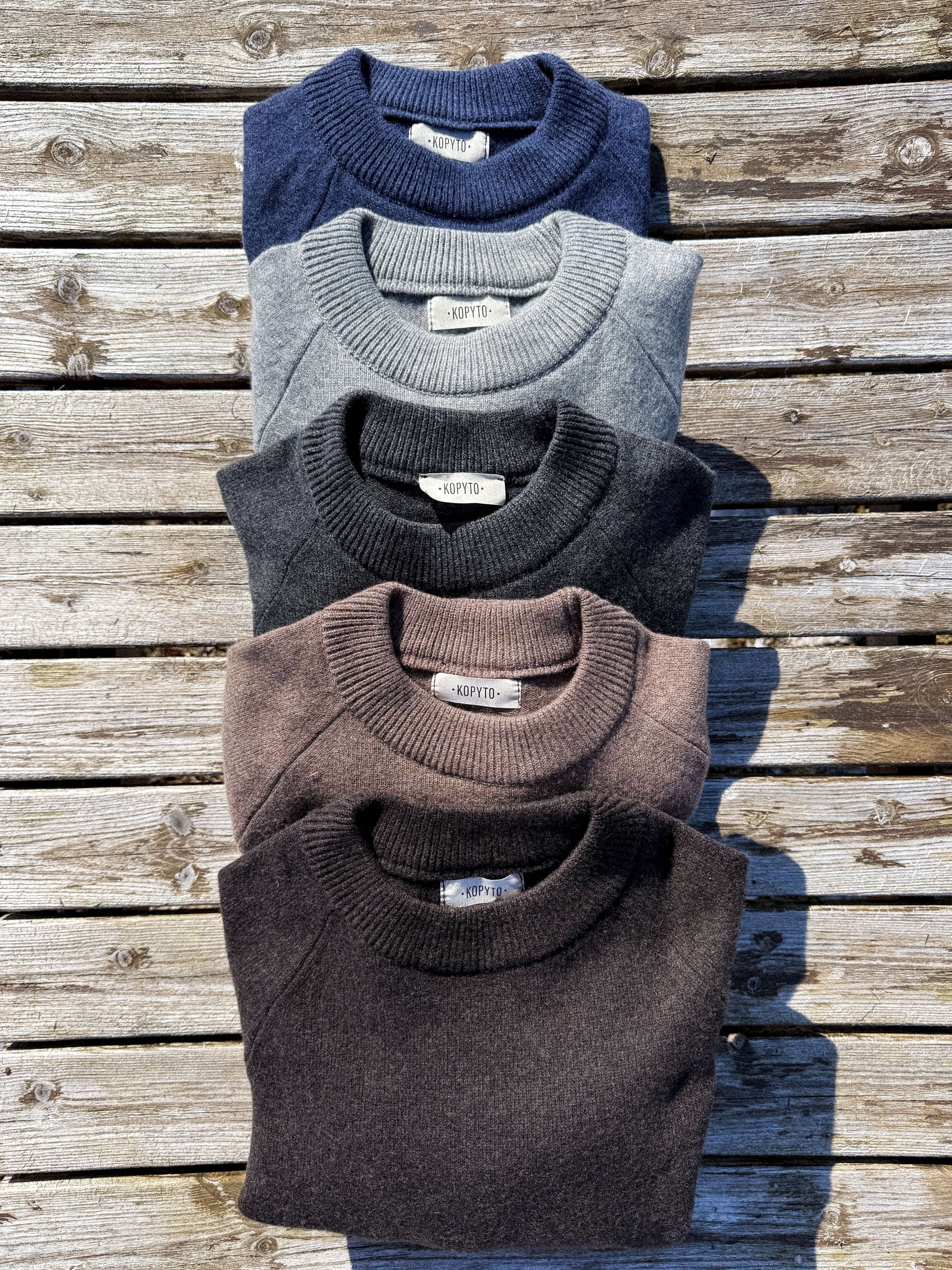 Zaprojektowałyśmy go tak, żeby towarzyszył Ci zarówno przy ognisku, na ganku w Bieszczadach, ale też randce w mieście, pracy, kinie czy kanapie w domu. Jest minimalistyczny, ale stylowy, bo z oryginalnym akcentem w postaci prążkowanego kołnierzyka w wyróżniającym się kolorze.