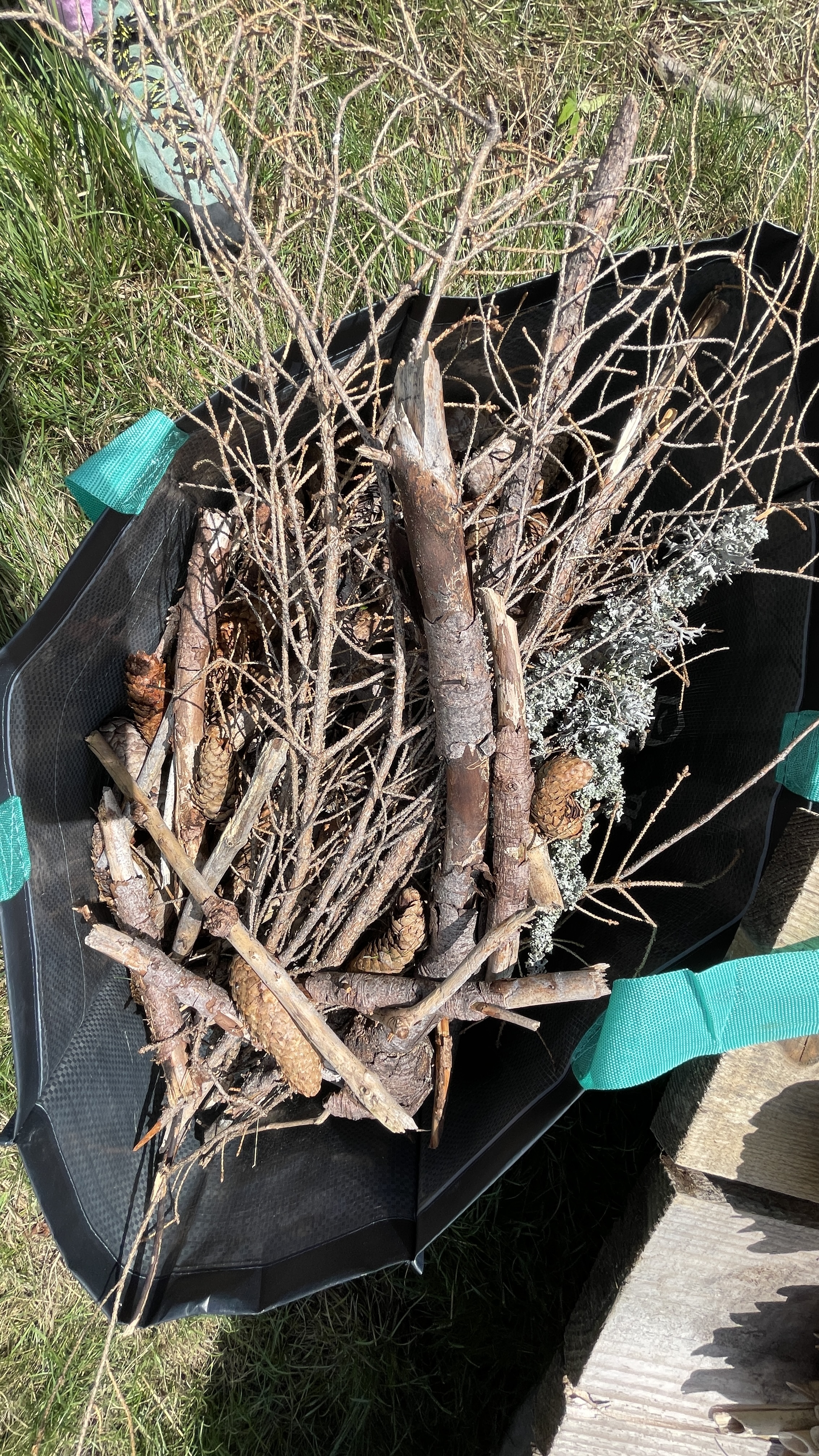 Po krótkim wstępie część uczestników wyruszyła do lasu, aby zebrać trochę próchna i innych przydatnych skarbów. Pozostali zajęli się układaniem palet w wyznaczonym miejscu i przygotowaniami szkieletu przyszłego hotelu.