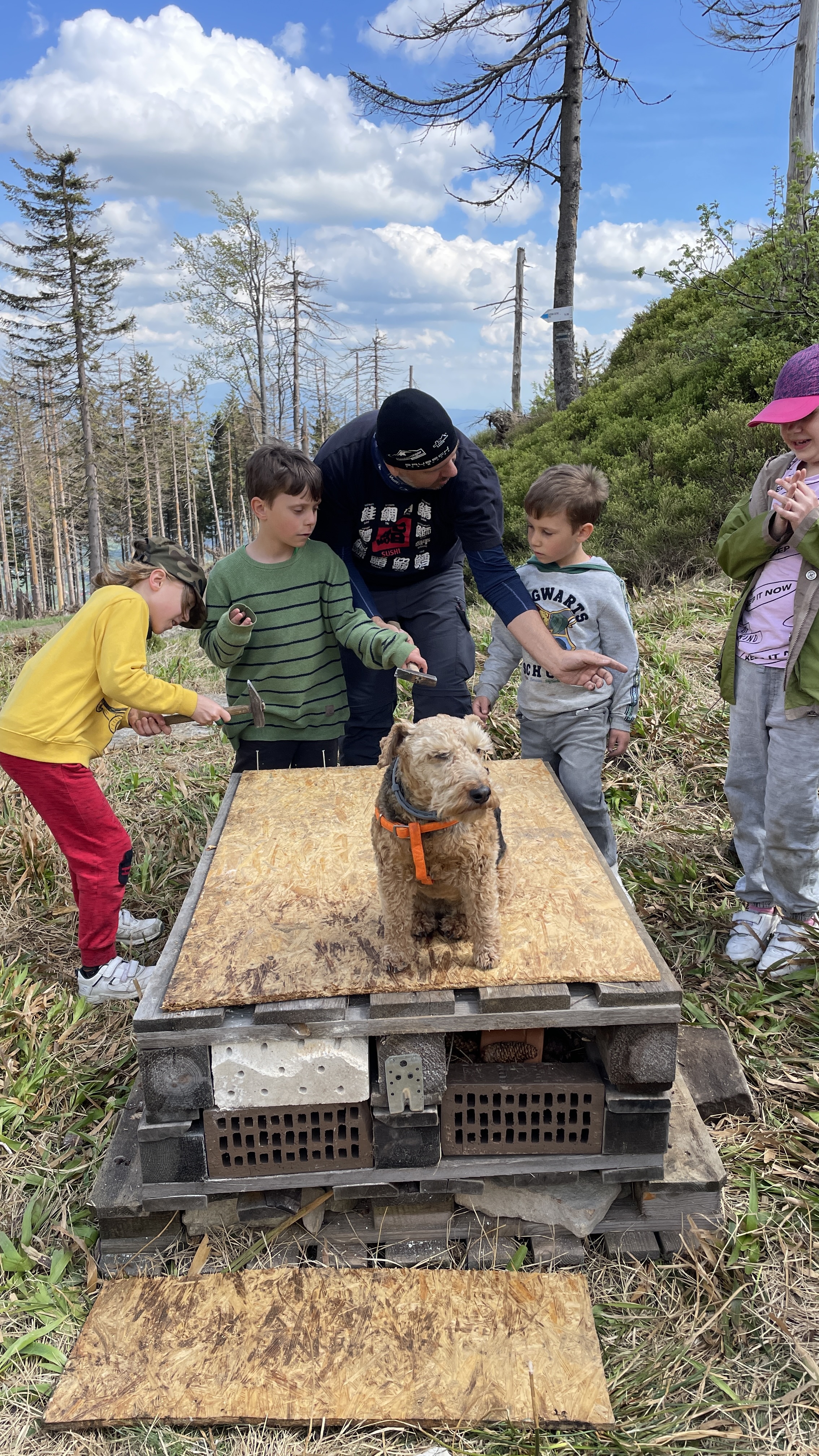 21 maja 2022 r. spotkaliśmy się na polanie pod Schroniskiem PTTK Skrzyczne, aby zbudować hotel dla dzikich zapylaczy.