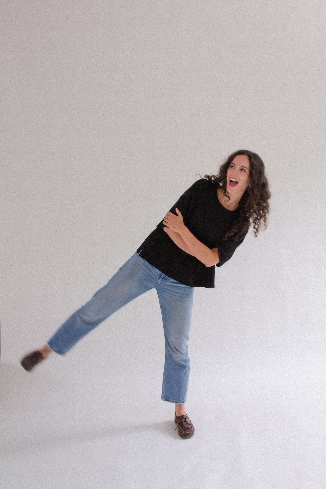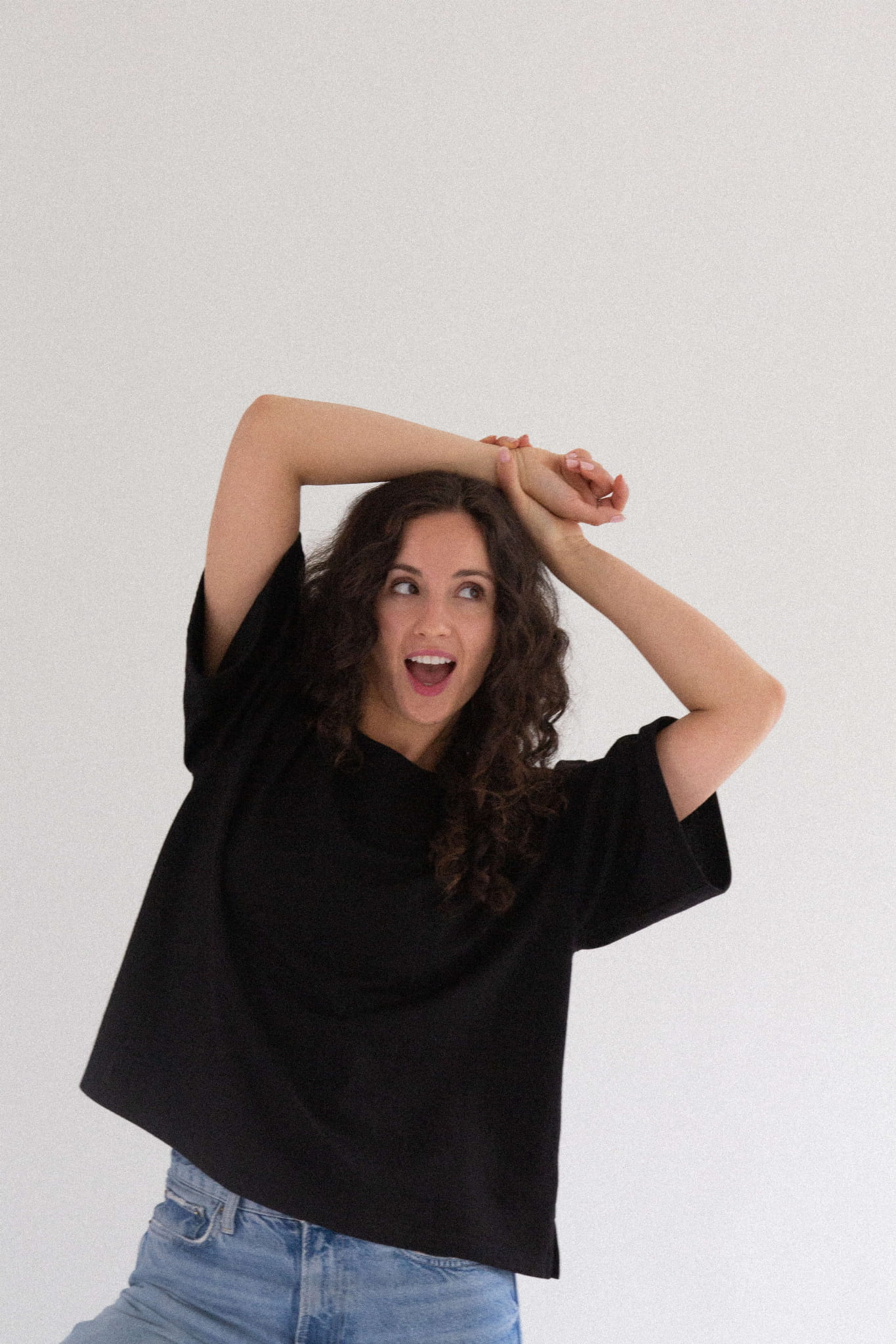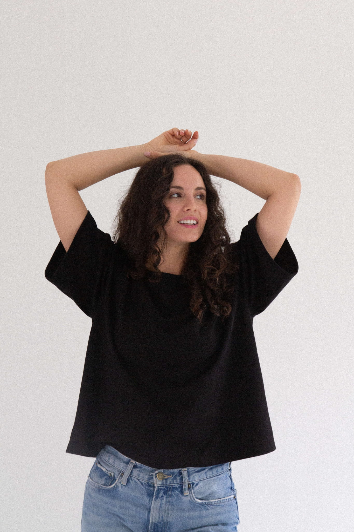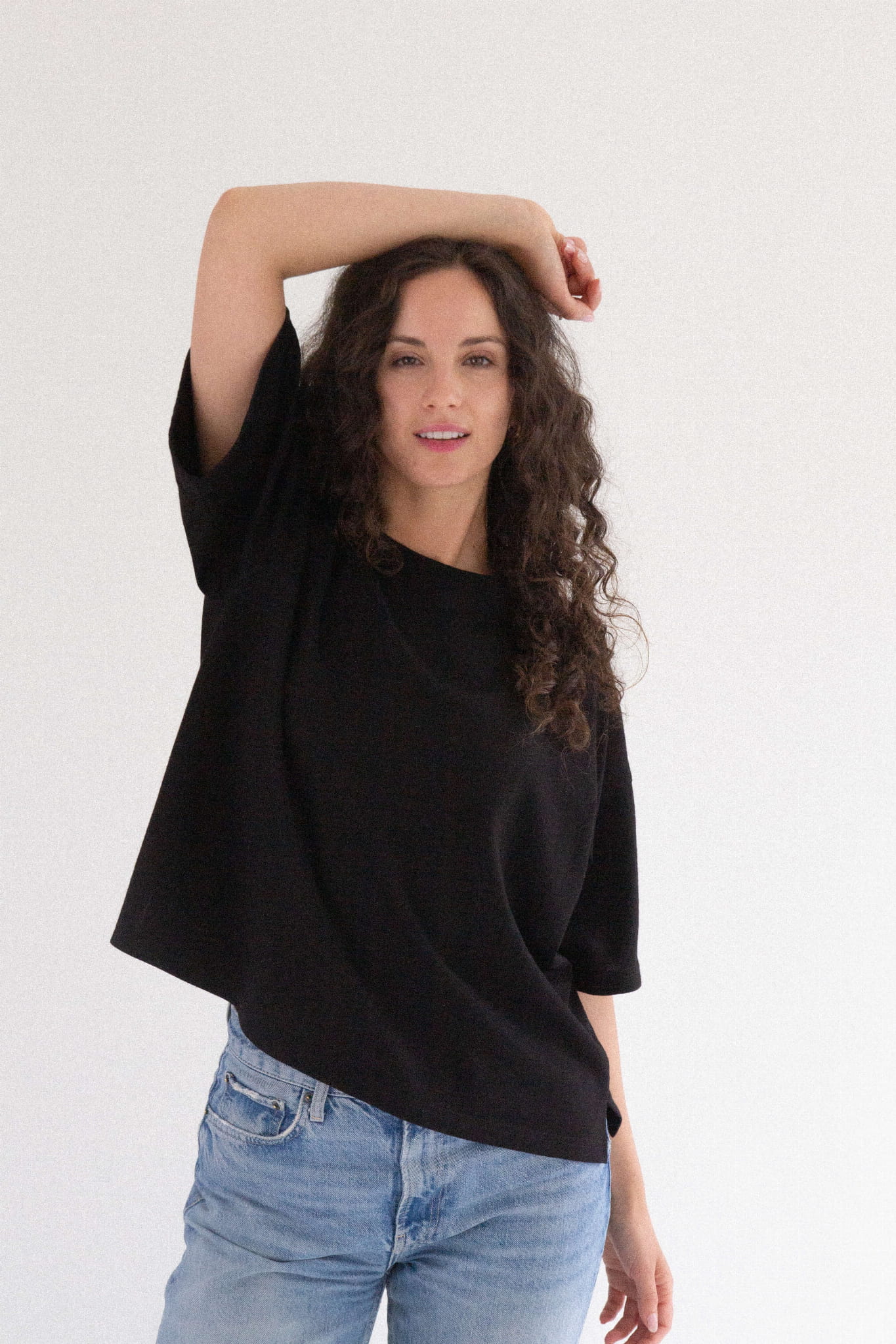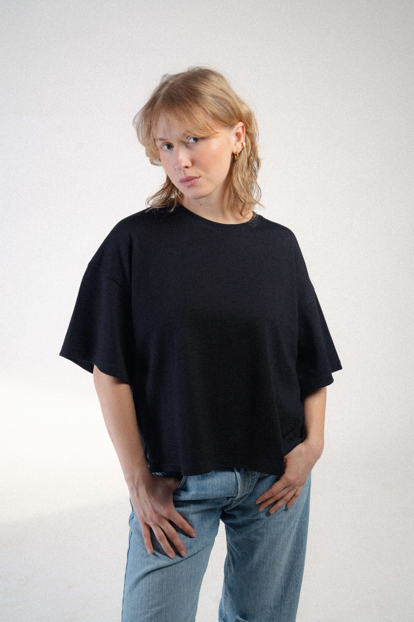 MAKAK - black women's box t-shirt - short sleeve oversize box shirt in 100% ethical merino wool