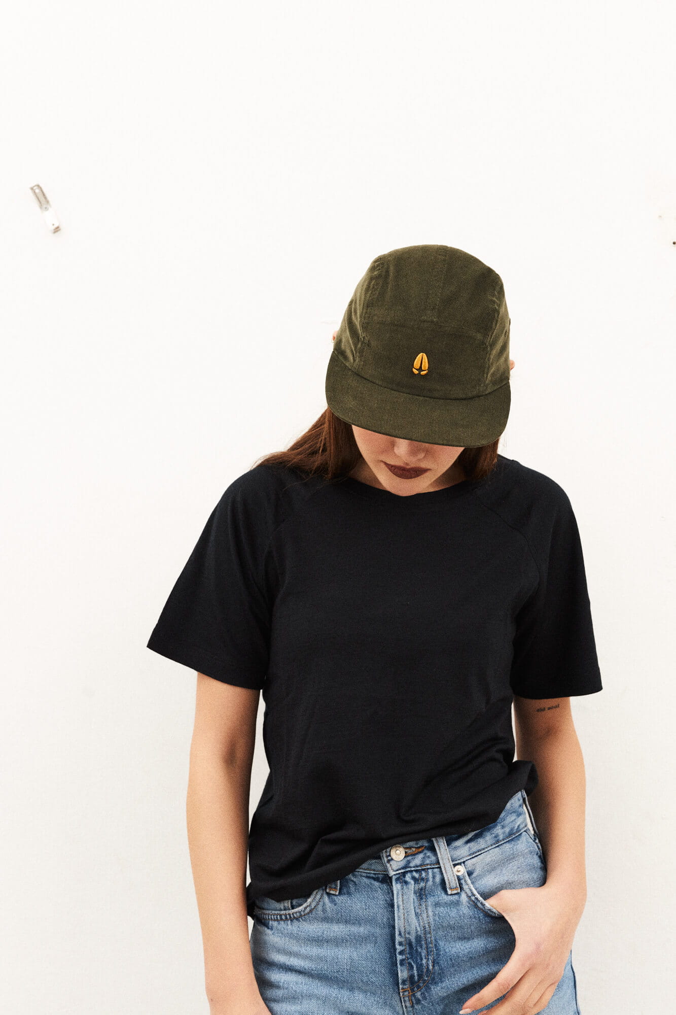 - Czapka jest w 100% naturalna i biodegradowalna (poza daszkiem, który użyjemy ponownie w produkcji) - ma bawełnianą metkę wewnętrzną i zewnętrzną wszywkę z Washpapy (tzw. skóra z papieru).