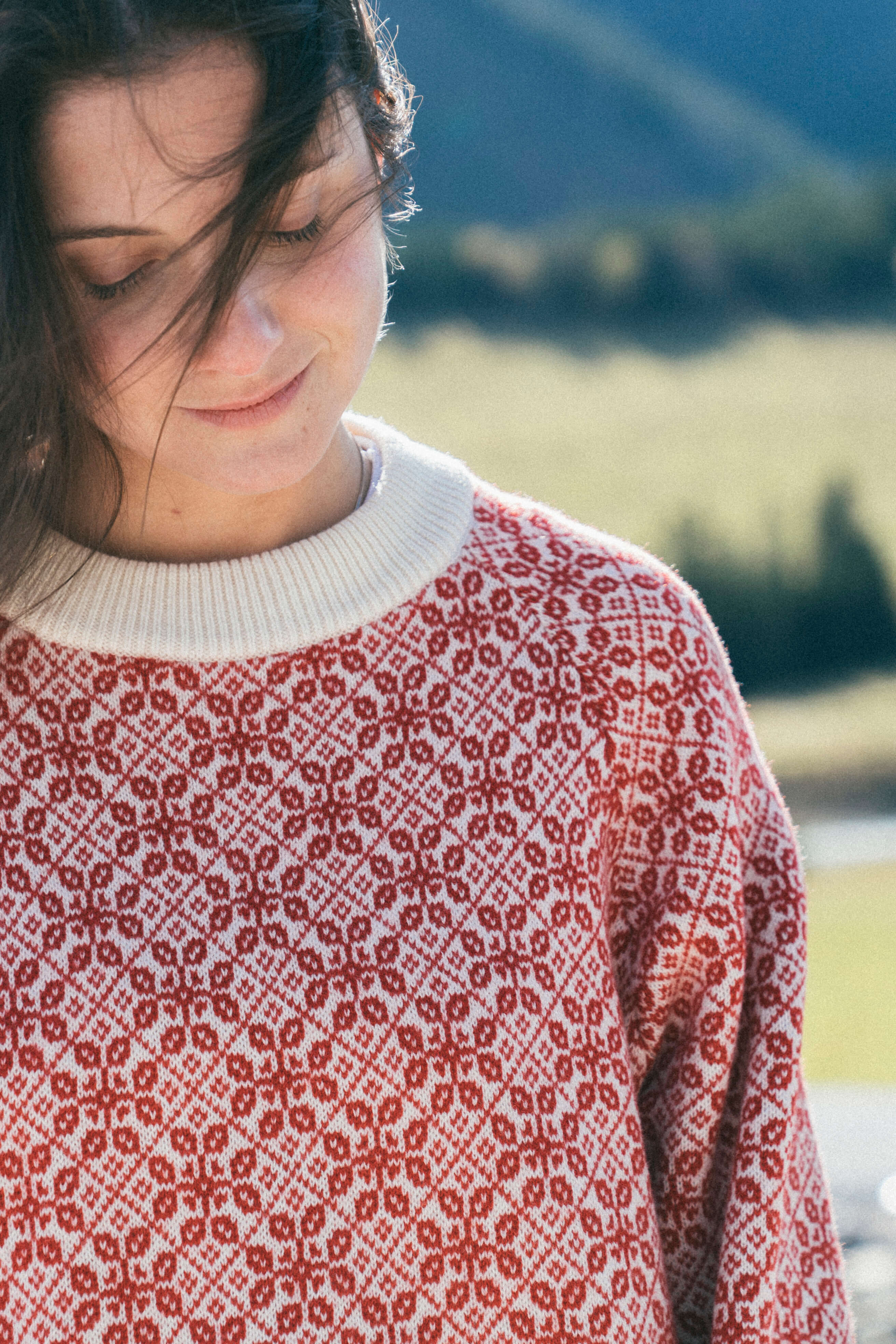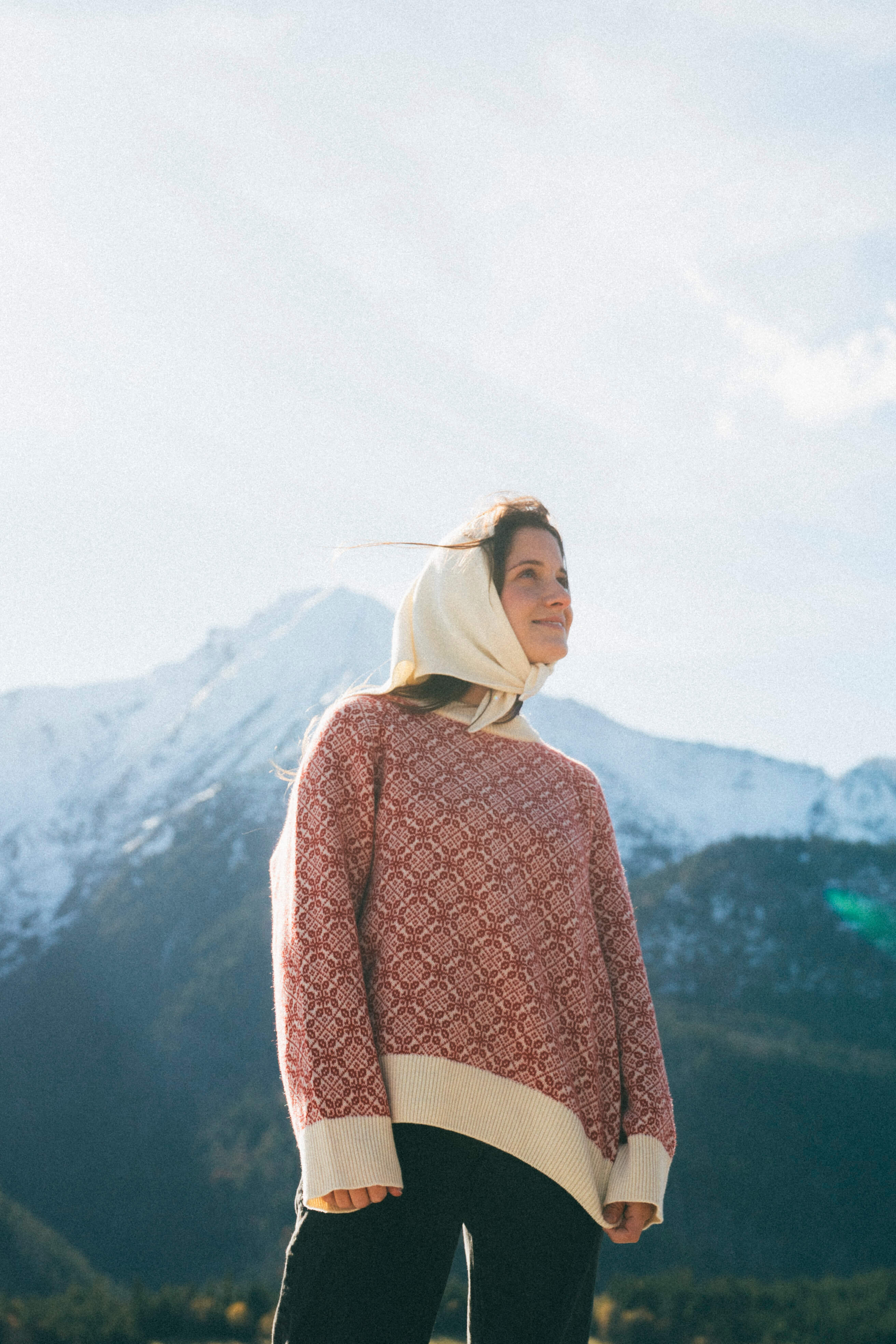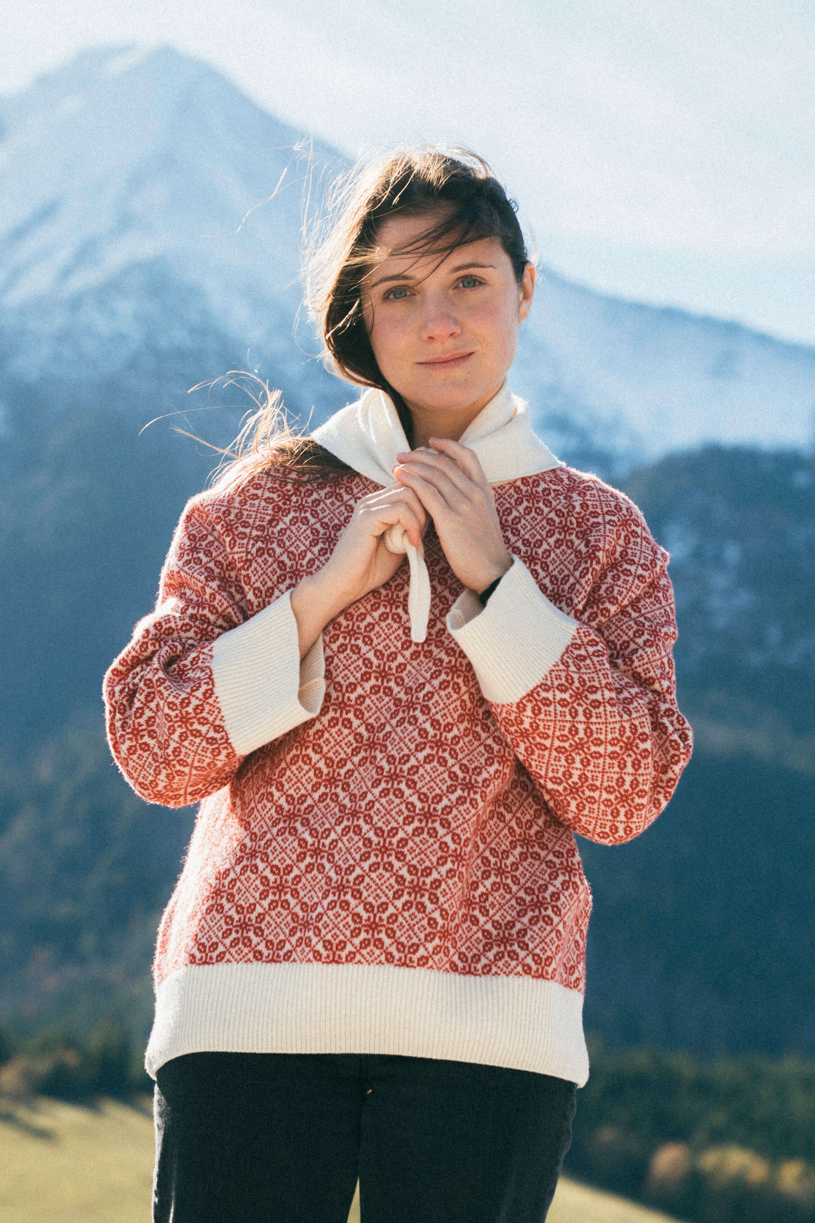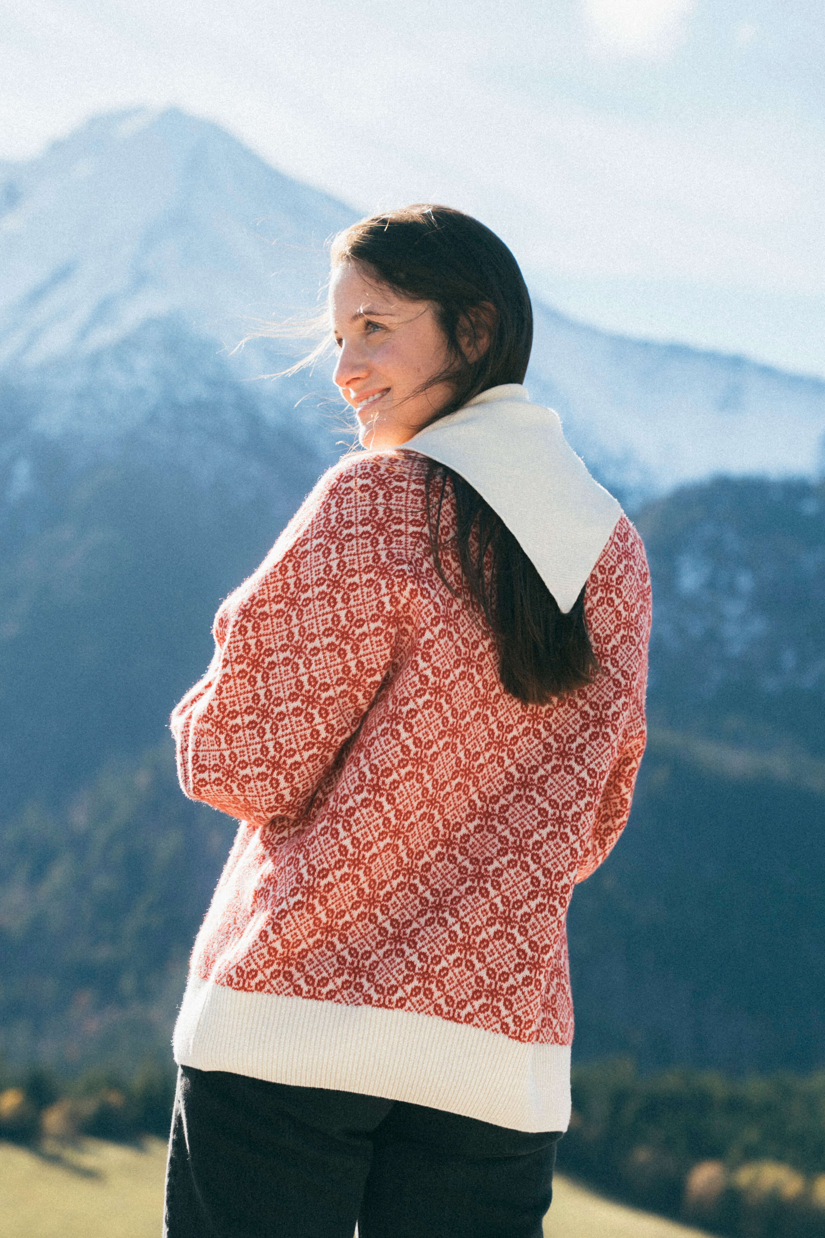 It was meant to be a Norwegian sweater. But instead of fjords, here in the Beskids we have our own peaks, valleys… and patterns. We took inspiration from Nordic motifs and dressed them in Beskid embroidery – a touch of Lemko, a hint of Highlander… Instead of a direct copy, we went for a creative reinterpretation – preserving the rhythm, symbolism, and color palette while giving it a minimalist, functional character. The result? A pattern that pays tribute to the heritage of our beloved region while giving it a fresh, modern twist.