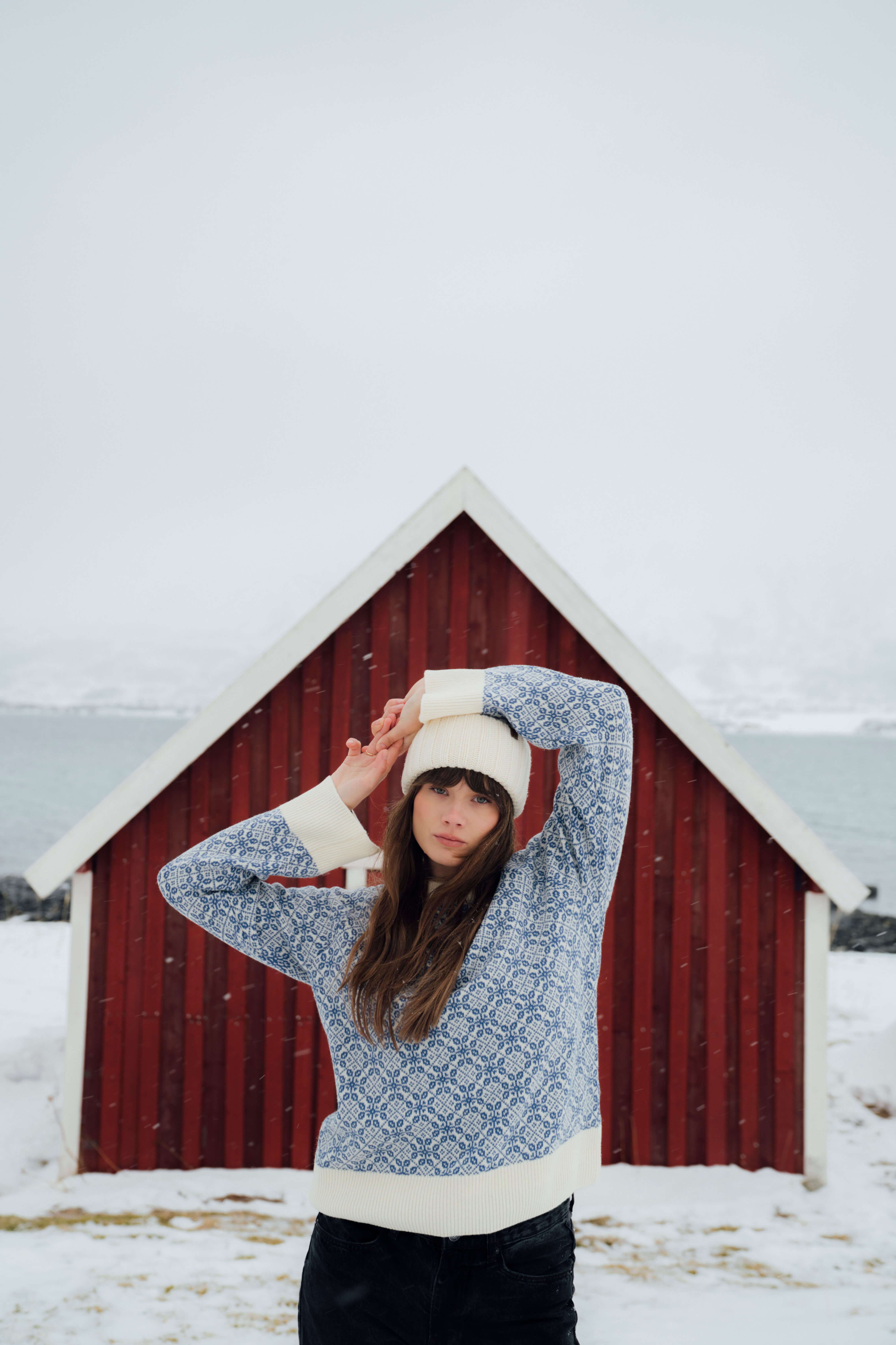 It was meant to be a Norwegian sweater. But instead of fjords, here in the Beskids we have our own peaks, valleys… and patterns. We took inspiration from Nordic motifs and dressed them in Beskid embroidery – a touch of Lemko, a hint of Highlander… Instead of a direct copy, we went for a creative reinterpretation – preserving the rhythm, symbolism, and color palette while giving it a minimalist, functional character. The result? A pattern that pays tribute to the heritage of our beloved region while giving it a fresh, modern twist.