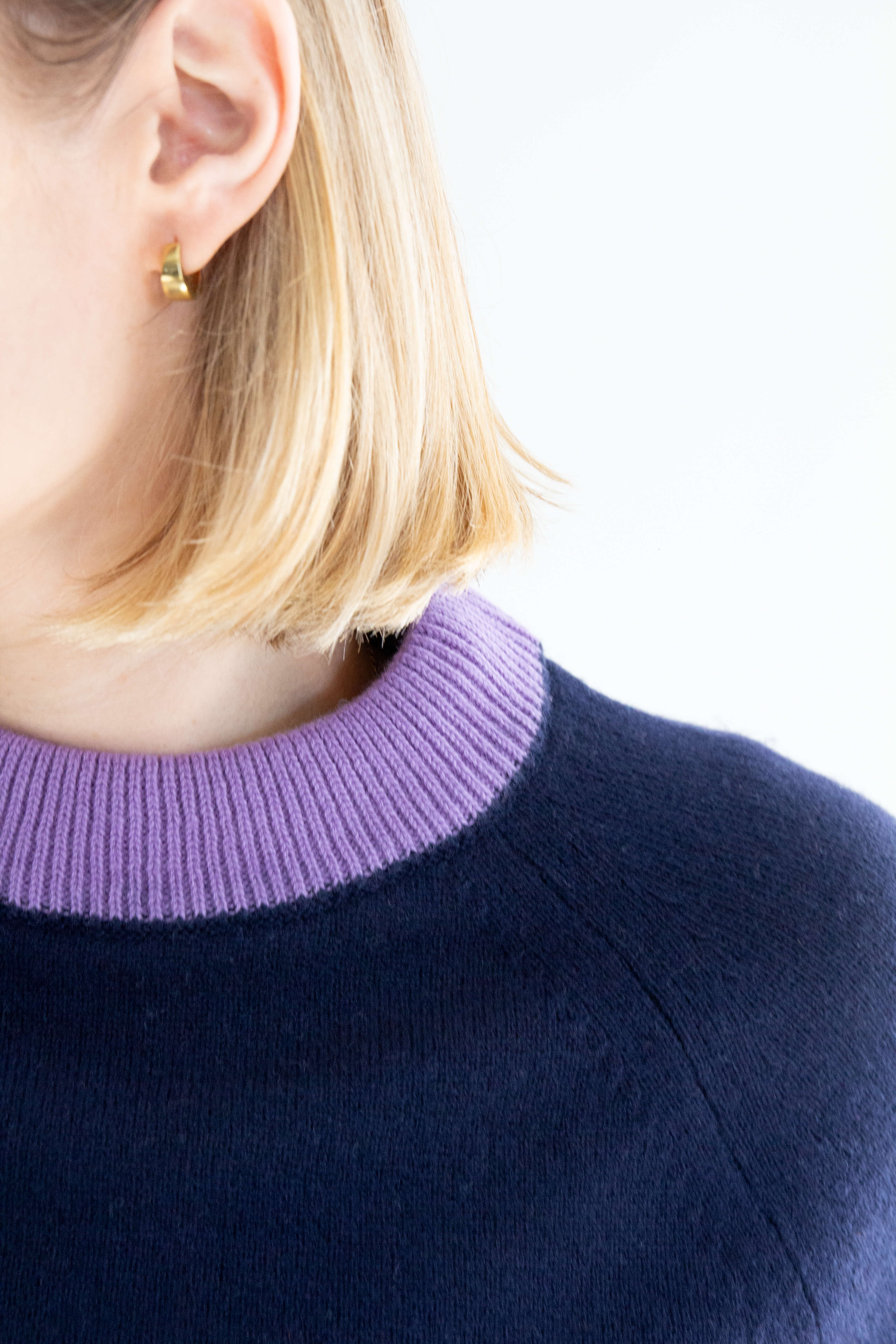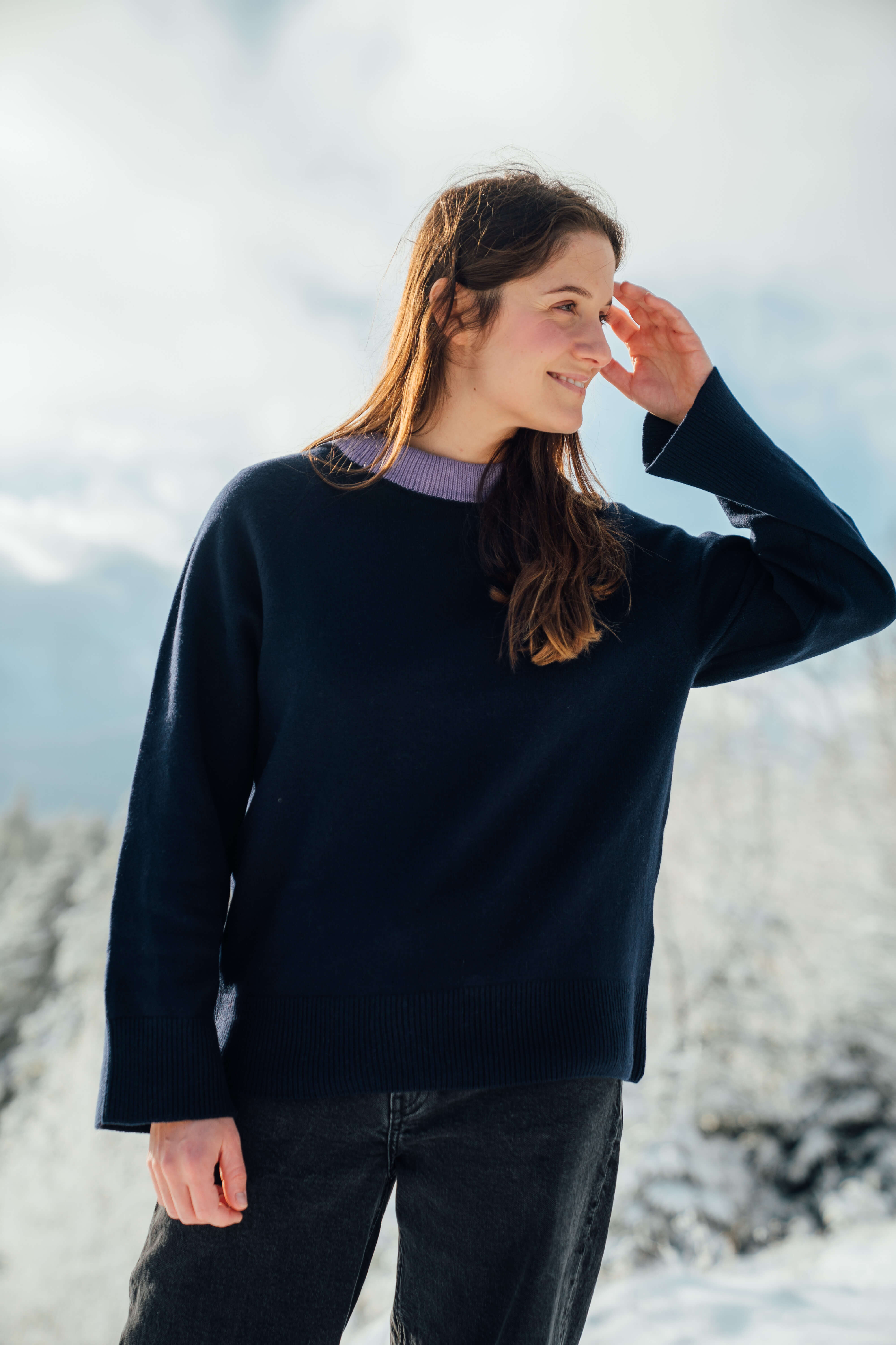 BARIBAL RWS - navy blue oversized wool sweatshirt with lavender trim - 100% merino wool RWS