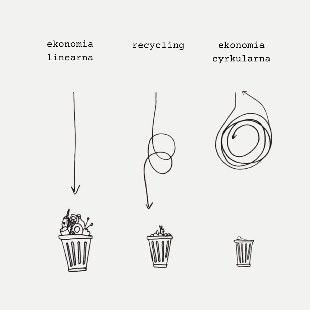 Najprościej tłumacząc, moda cyrkularna jest przeciwieństwem mody linearnej, stosowanej w fast fashion (z ang. szybka moda - sklepy typu sieciówki), która to działa wg. najkrótszego liniowego modelu (ekonomii linearnej):