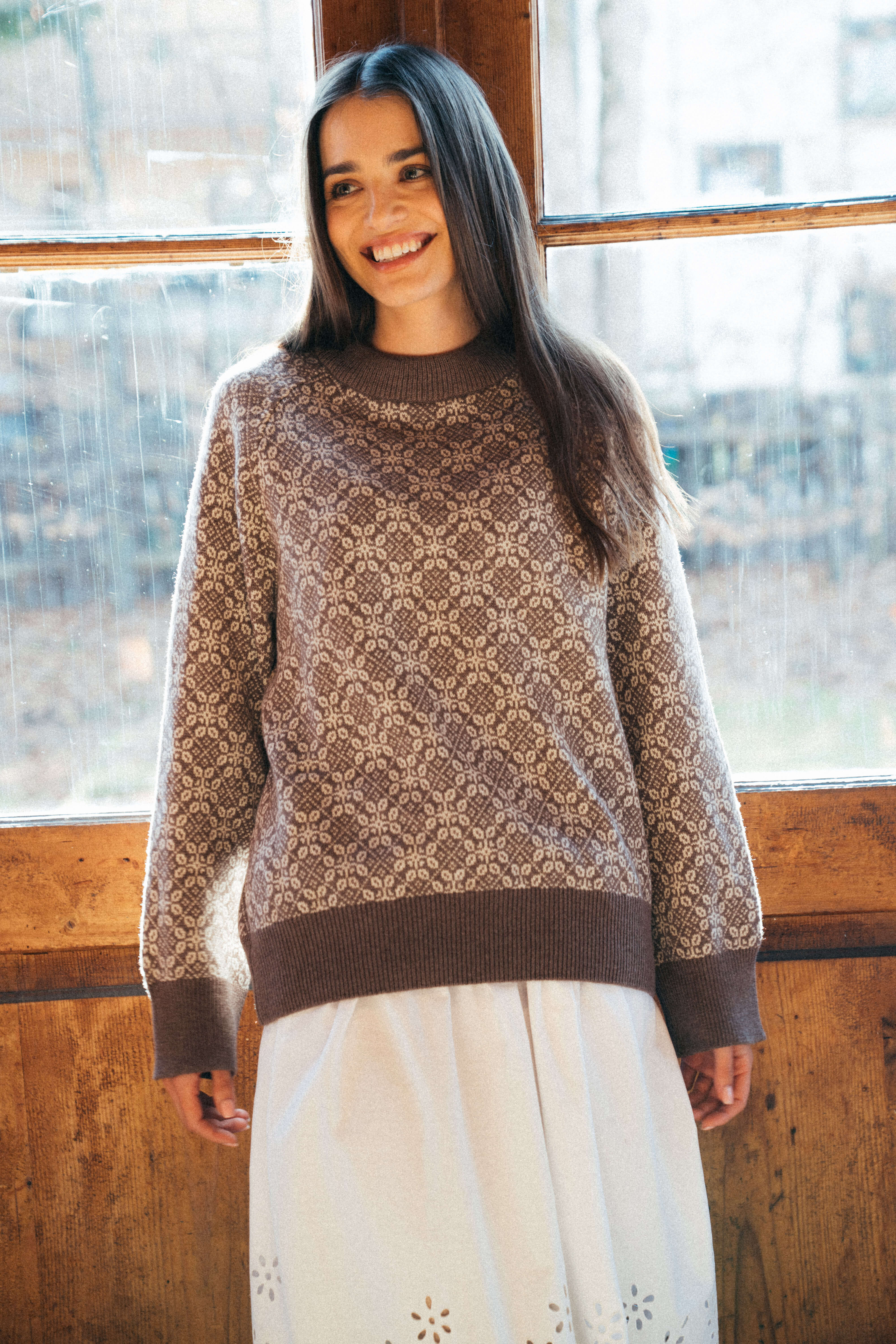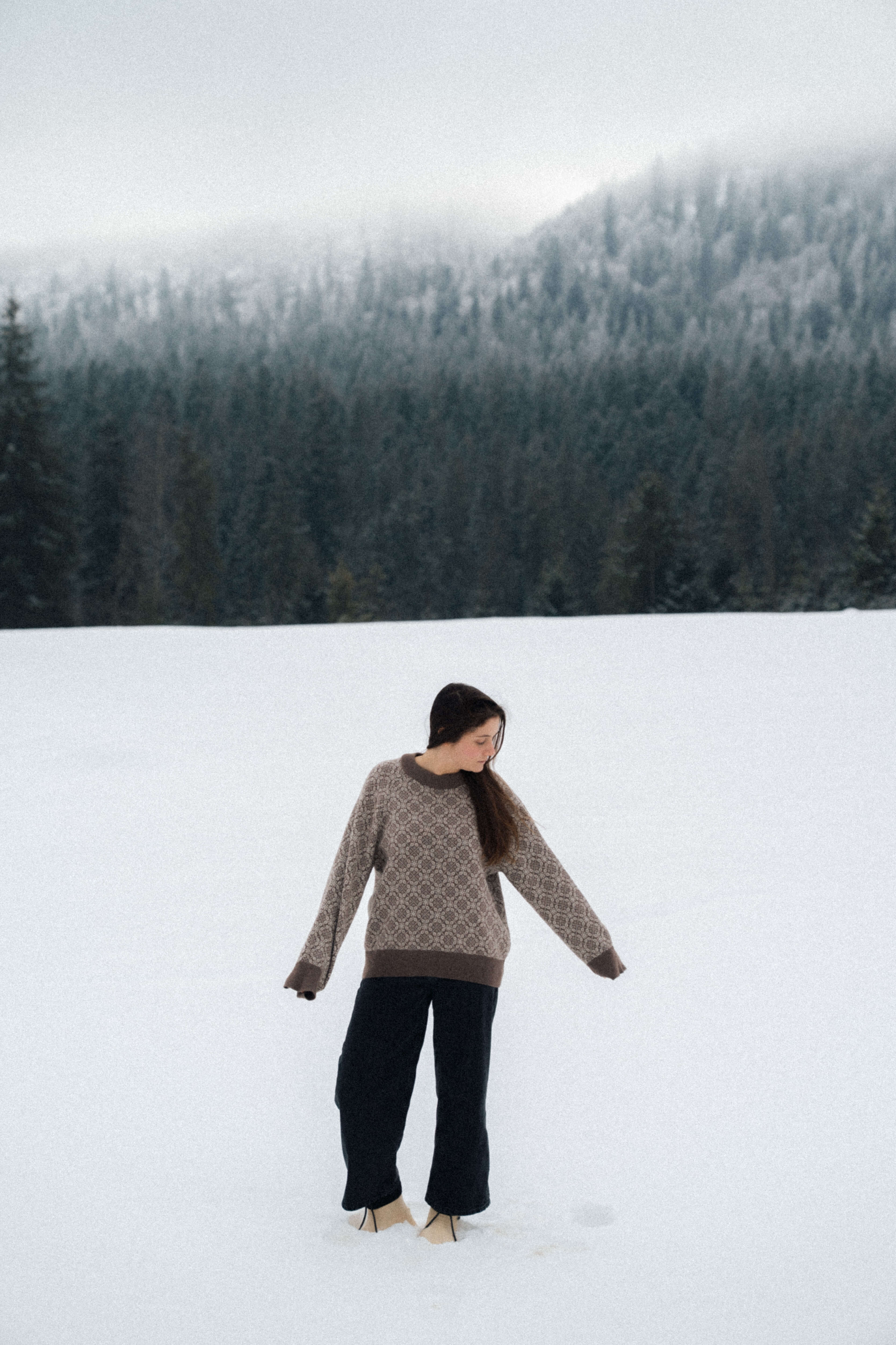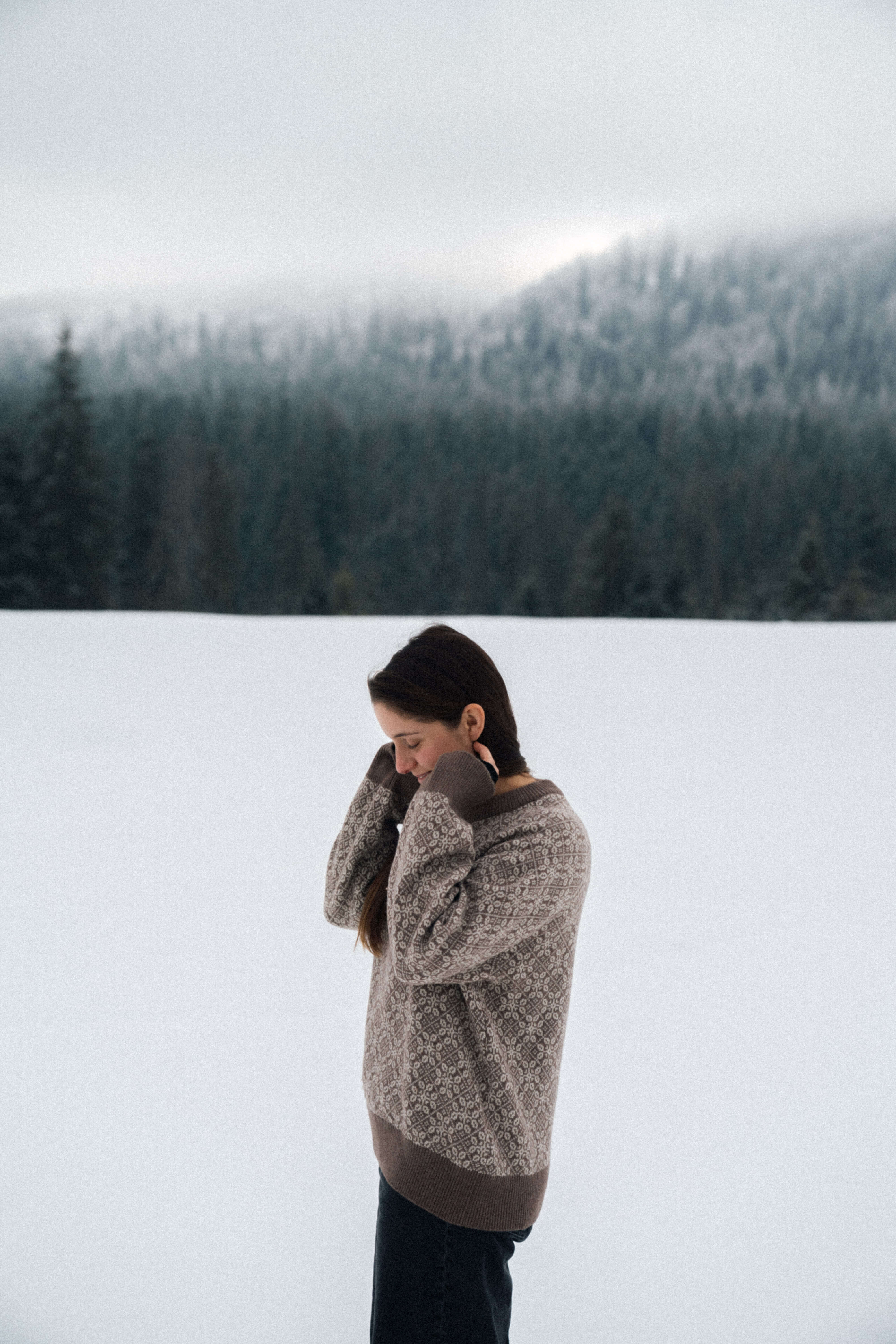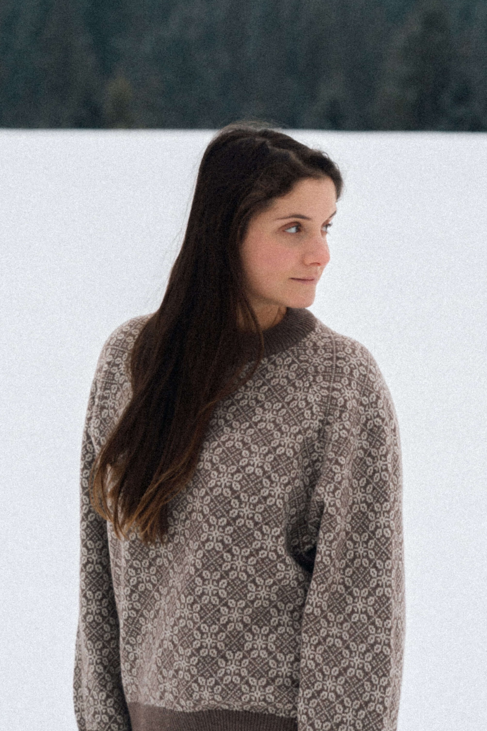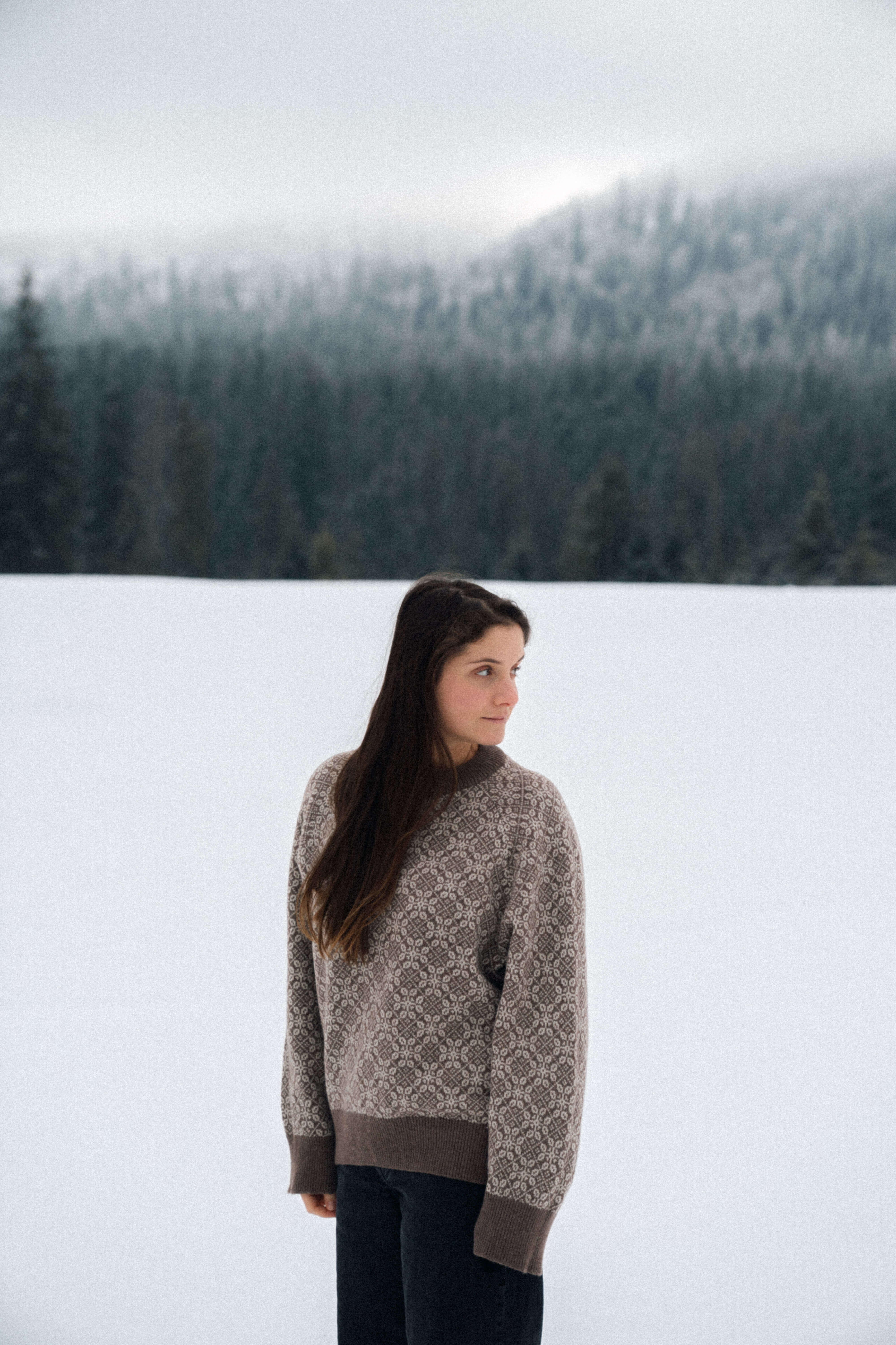 It was meant to be a Norwegian sweater. But instead of fjords, here in the Beskids we have our own peaks, valleys… and patterns. We took inspiration from Nordic motifs and dressed them in Beskid embroidery – a touch of Lemko, a hint of Highlander… Instead of a direct copy, we went for a creative reinterpretation – preserving the rhythm, symbolism, and color palette while giving it a minimalist, functional character. The result? A pattern that pays tribute to the heritage of our beloved region while giving it a fresh, modern twist.