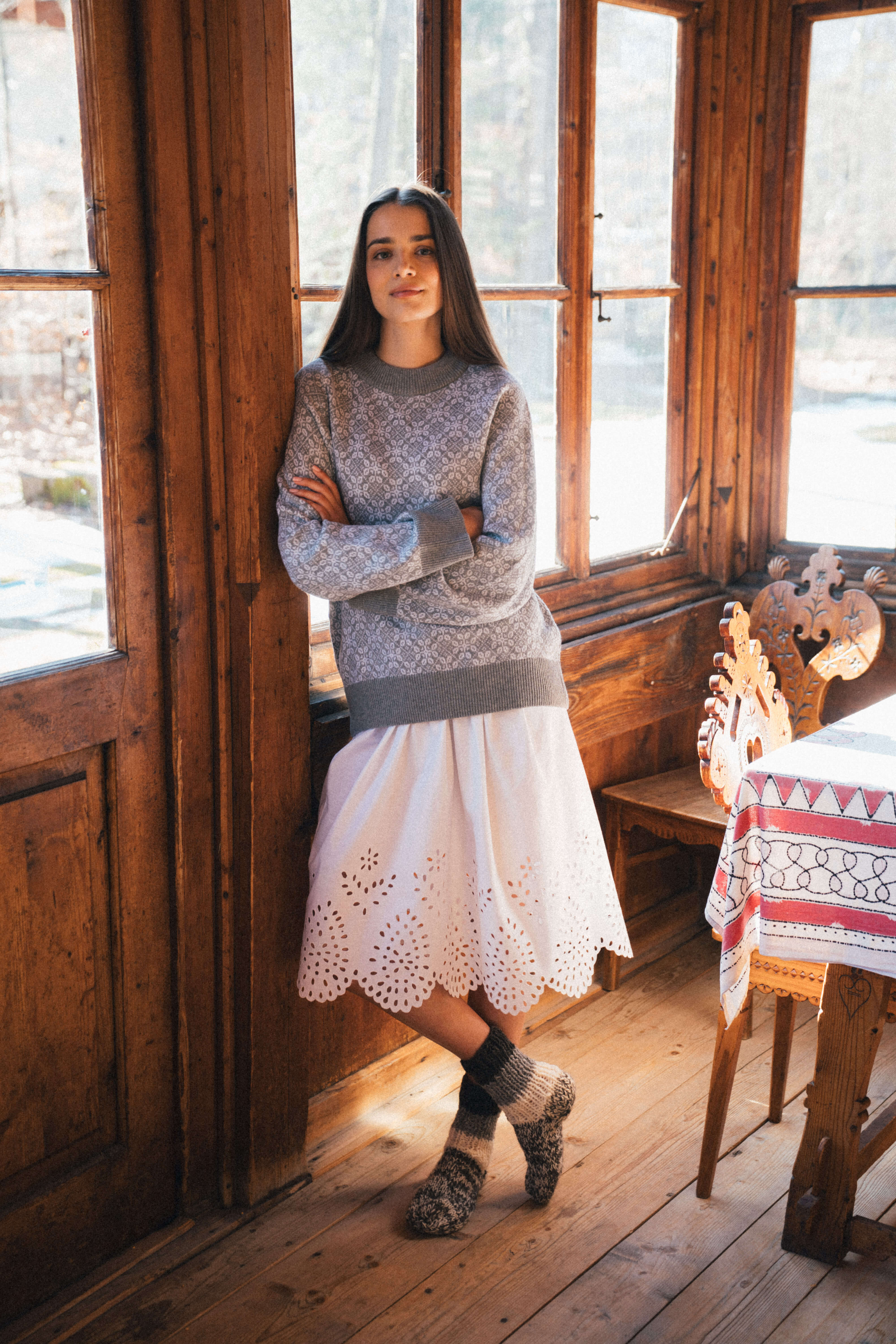 It was meant to be a Norwegian sweater. But instead of fjords, here in the Beskids we have our own peaks, valleys… and patterns. We took inspiration from Nordic motifs and dressed them in Beskid embroidery – a touch of Lemko, a hint of Highlander… Instead of a direct copy, we went for a creative reinterpretation – preserving the rhythm, symbolism, and color palette while giving it a minimalist, functional character. The result? A pattern that pays tribute to the heritage of our beloved region while giving it a fresh, modern twist.