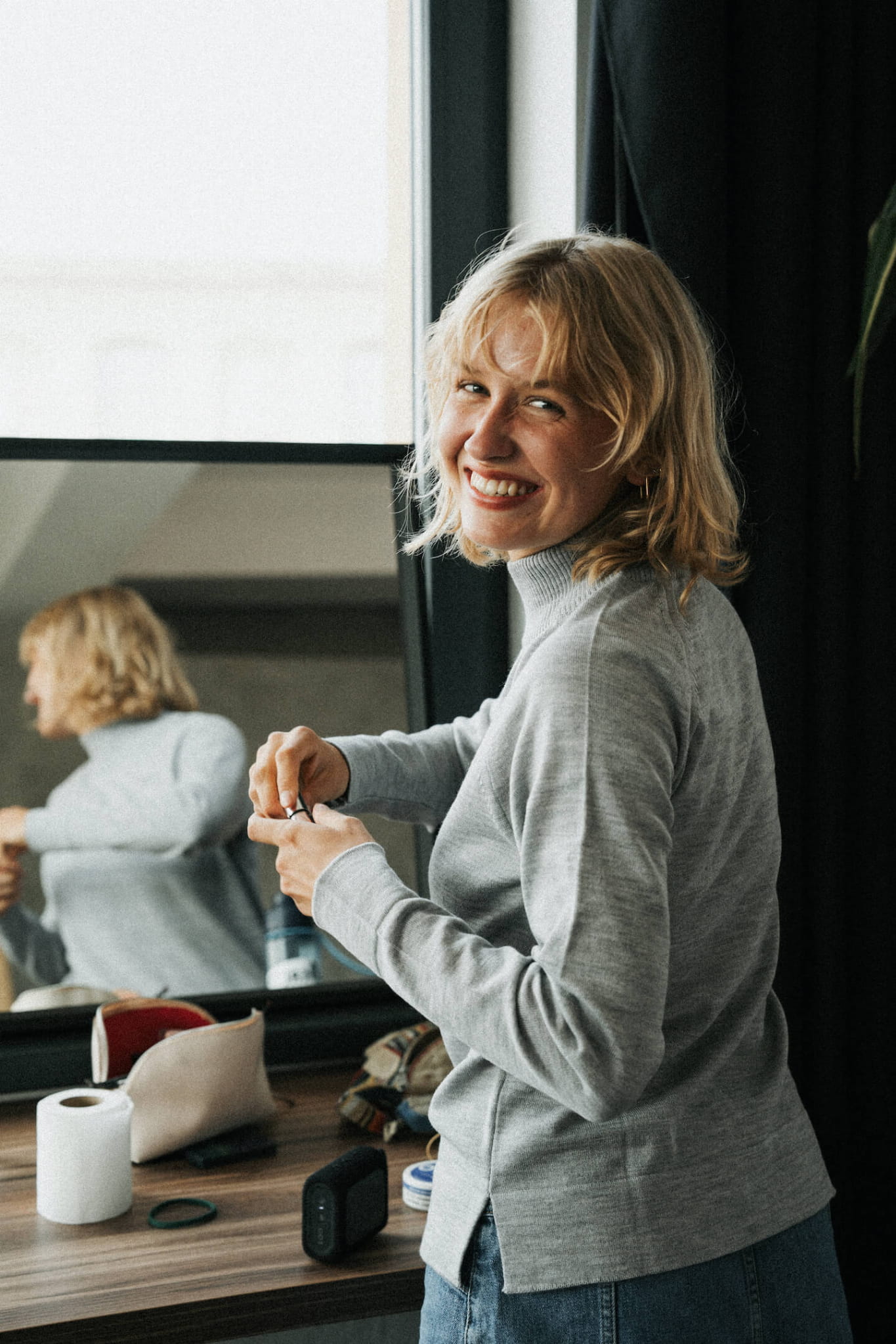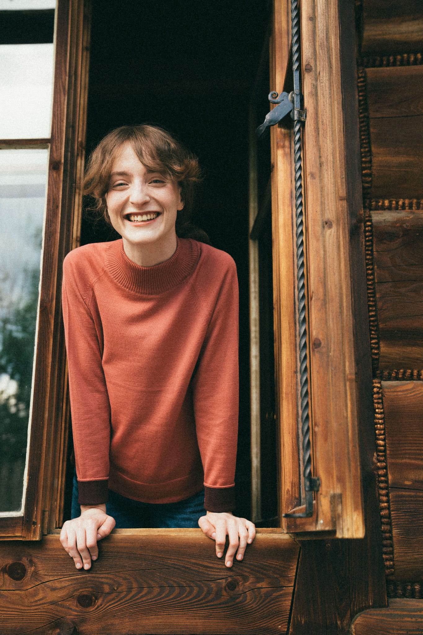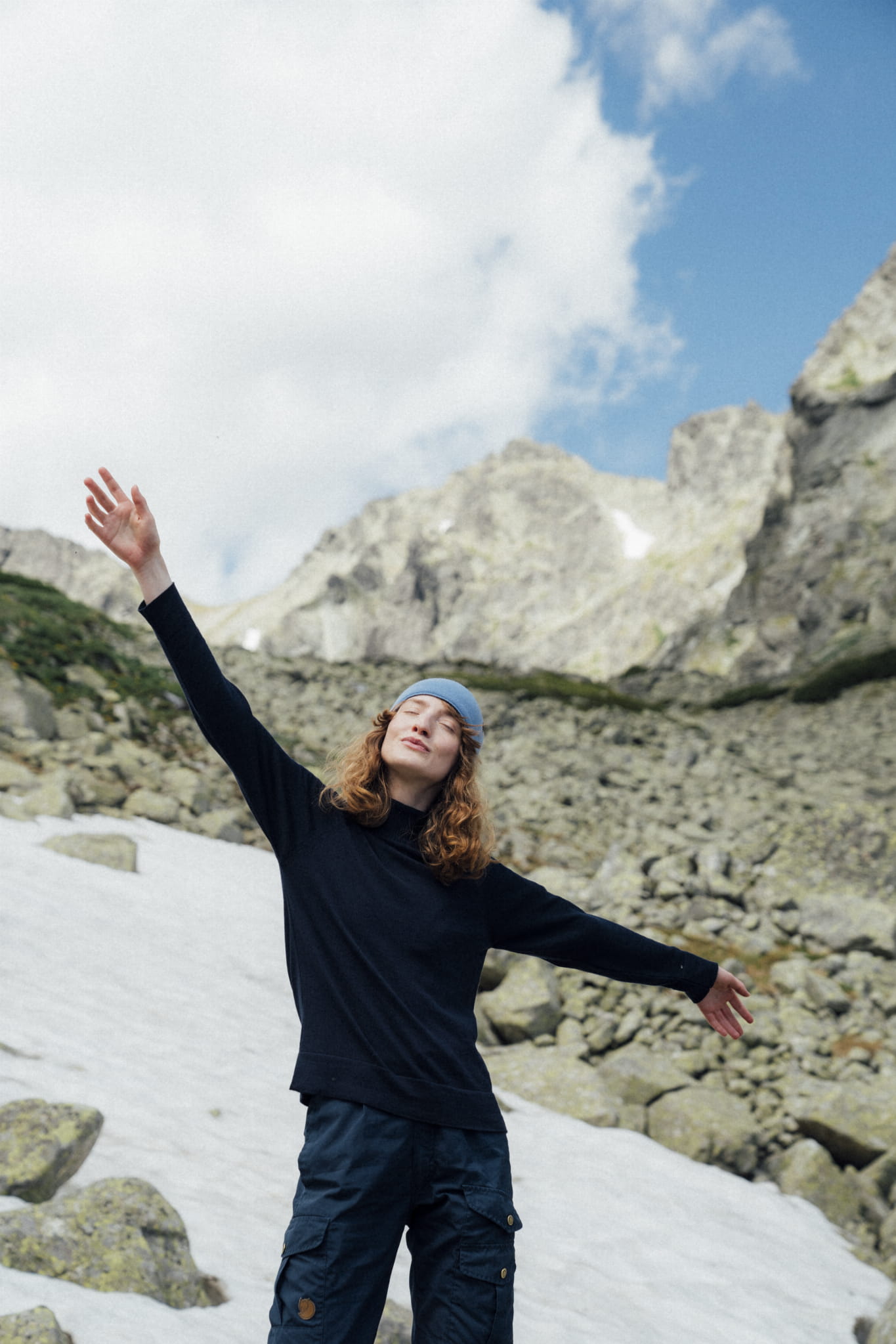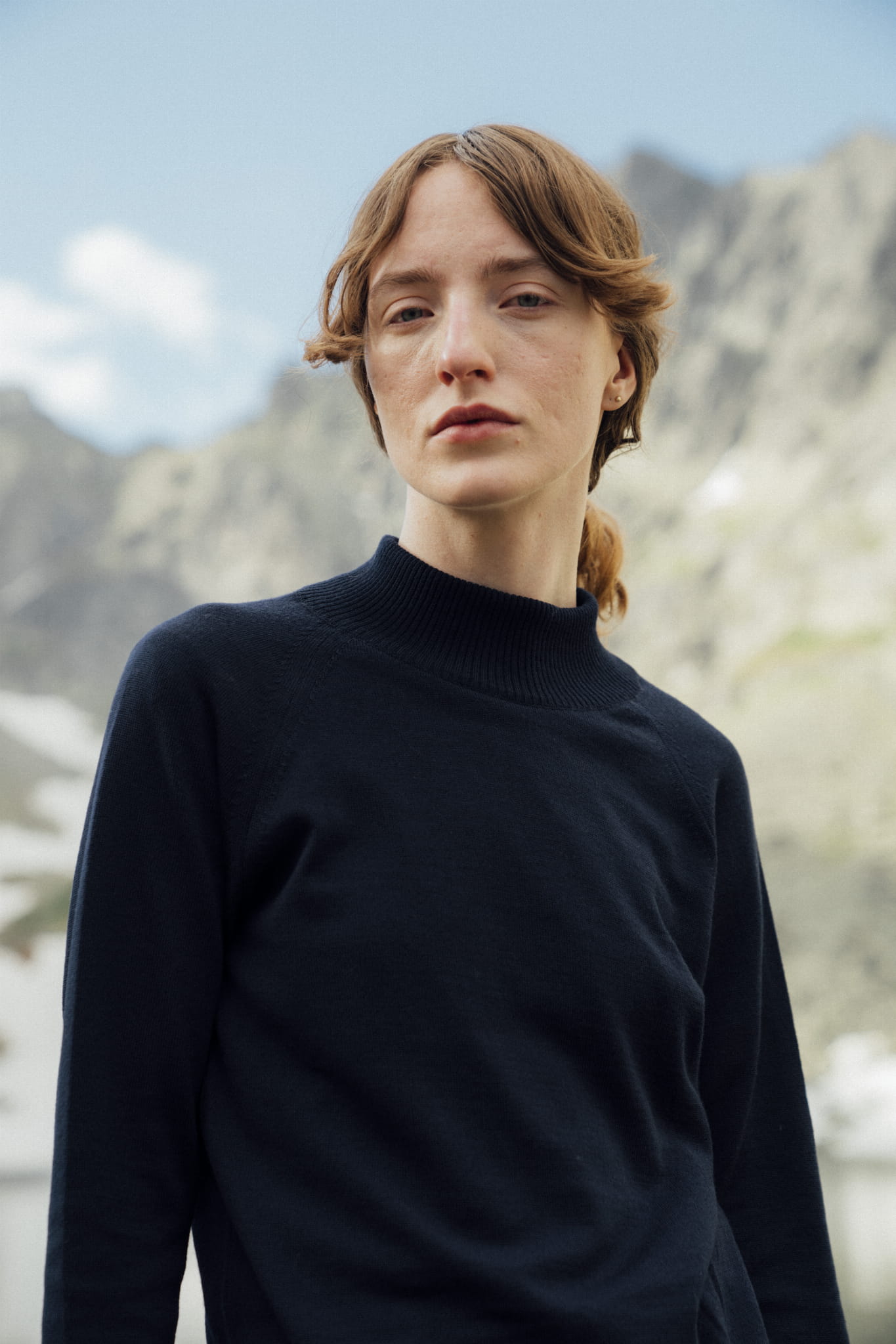 A women's wool sweater with a comfortable turtleneck. It can be casual or elegant. It fits perfectly on any body type thanks to its raglan sleeves. Minimalist, simple, timeless, perfect for pants but also great with dresses. You can also use it as thermal wear for sports activities.