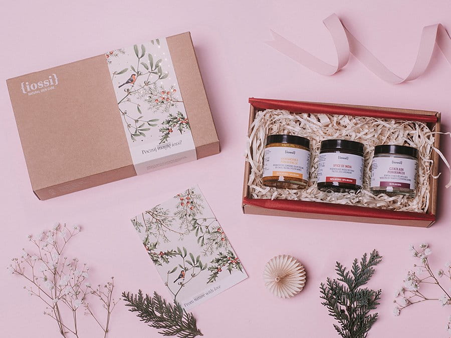 złożony z produktów polskiej i naturalnej eko manufaktury kosmetyków {iossi}. Wszystkie powstałe u nich produkty są ze składników organicznych, składniki ziołowe do nich są samodzielnie macerowane, a cała ich produkcja mieści się w Puszczy Niepołomickiej. Do tego zestawu wchodzą trzy umilacze: regenerujące masło do ciała, peeling do ciała i maseczka do twarzy, zapakowane w sposób ekologiczny i zero waste.