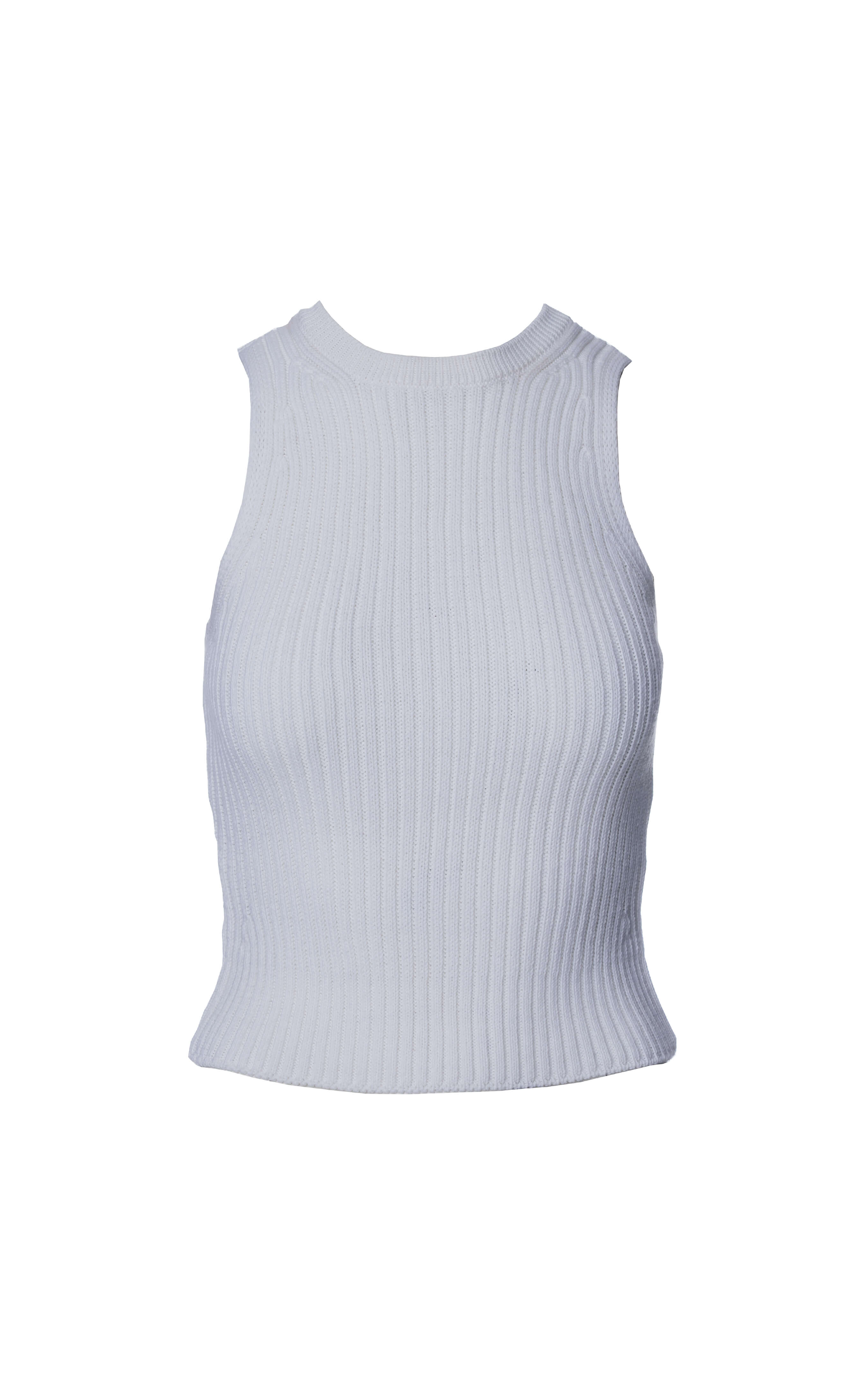 IMPALA RWS – biały prążkowany top halter damski z wełny merino i bawełny