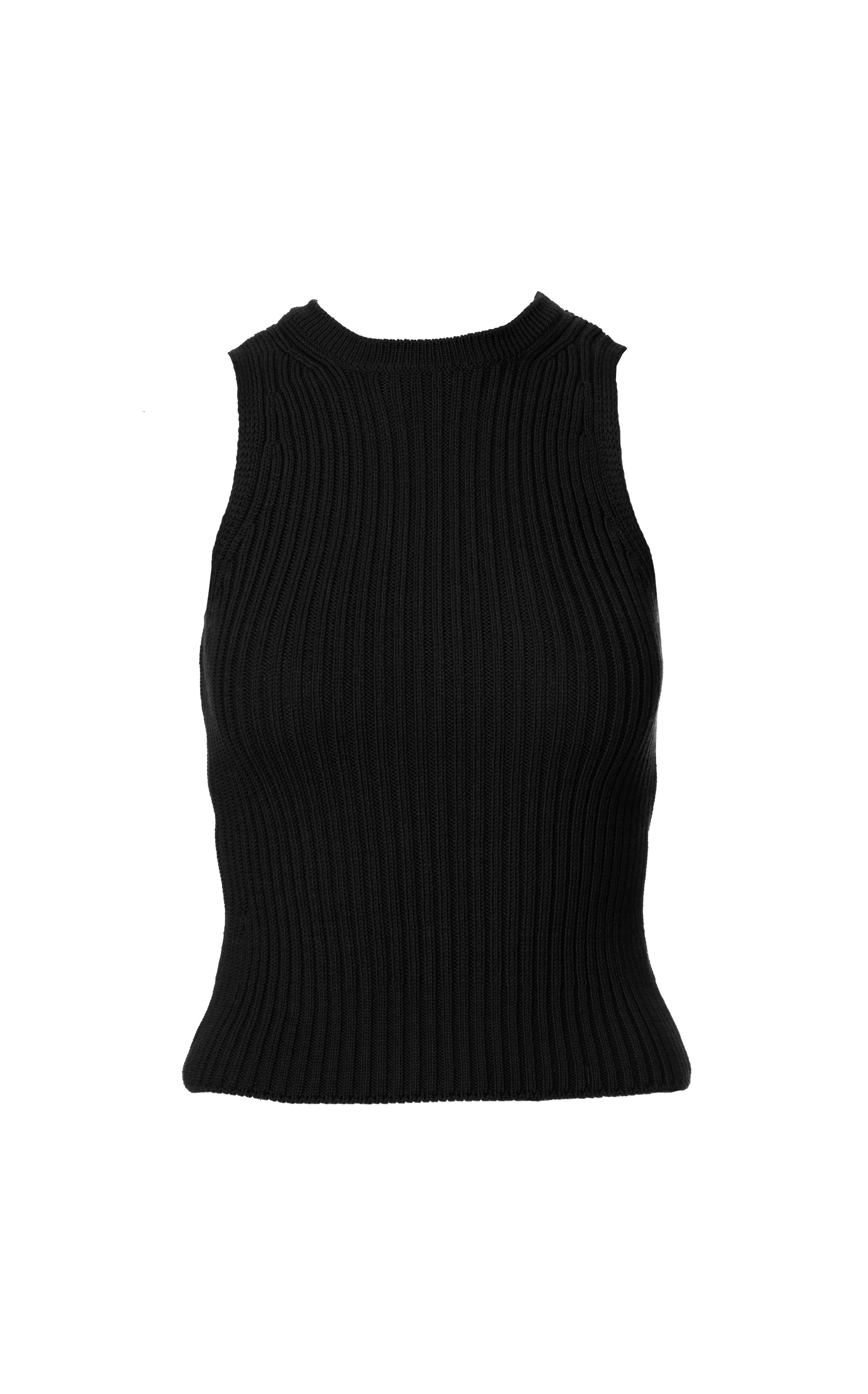 IMPALA RWS – czarny prążkowany top halter damski z wełny merino i bawełny