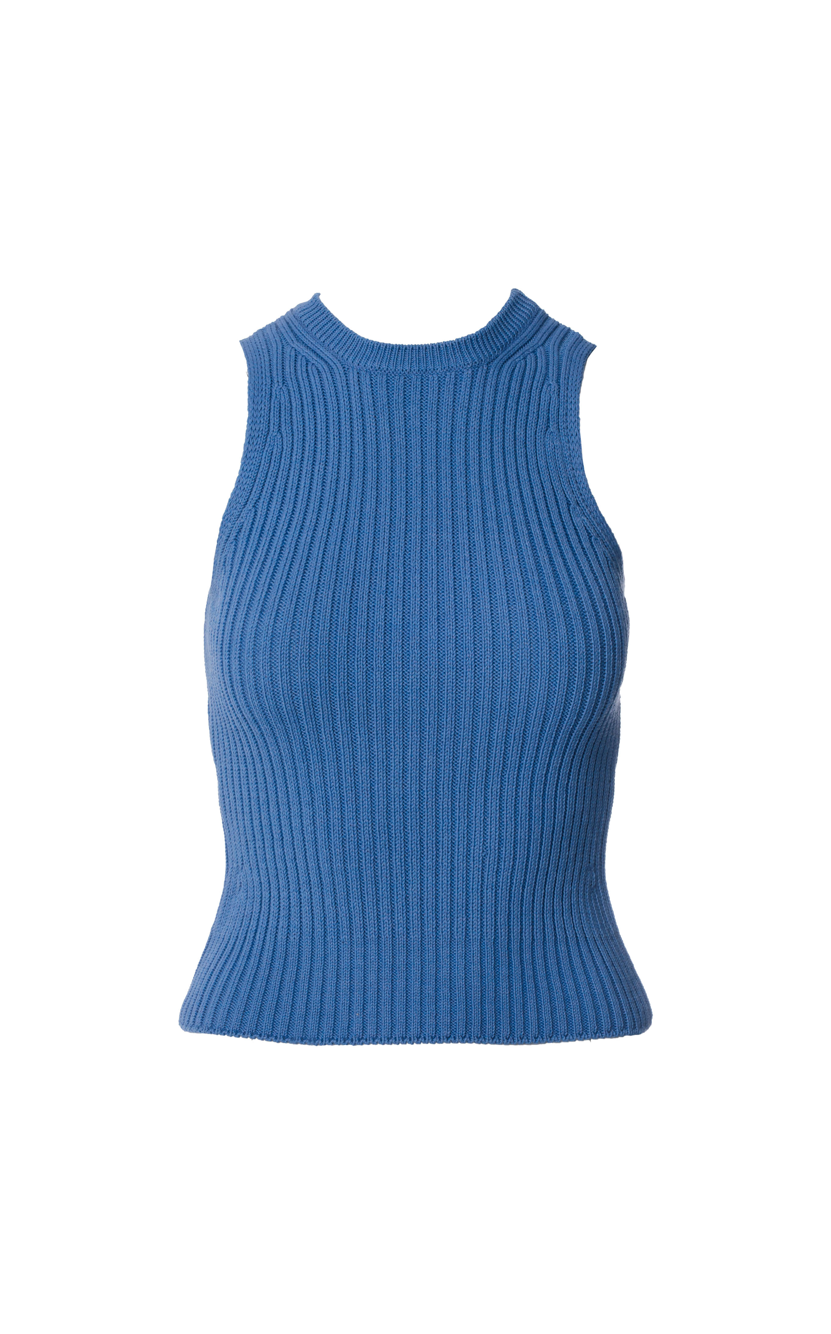 IMPALA RWS – niebieski prążkowany top halter damski z wełny merino i bawełny