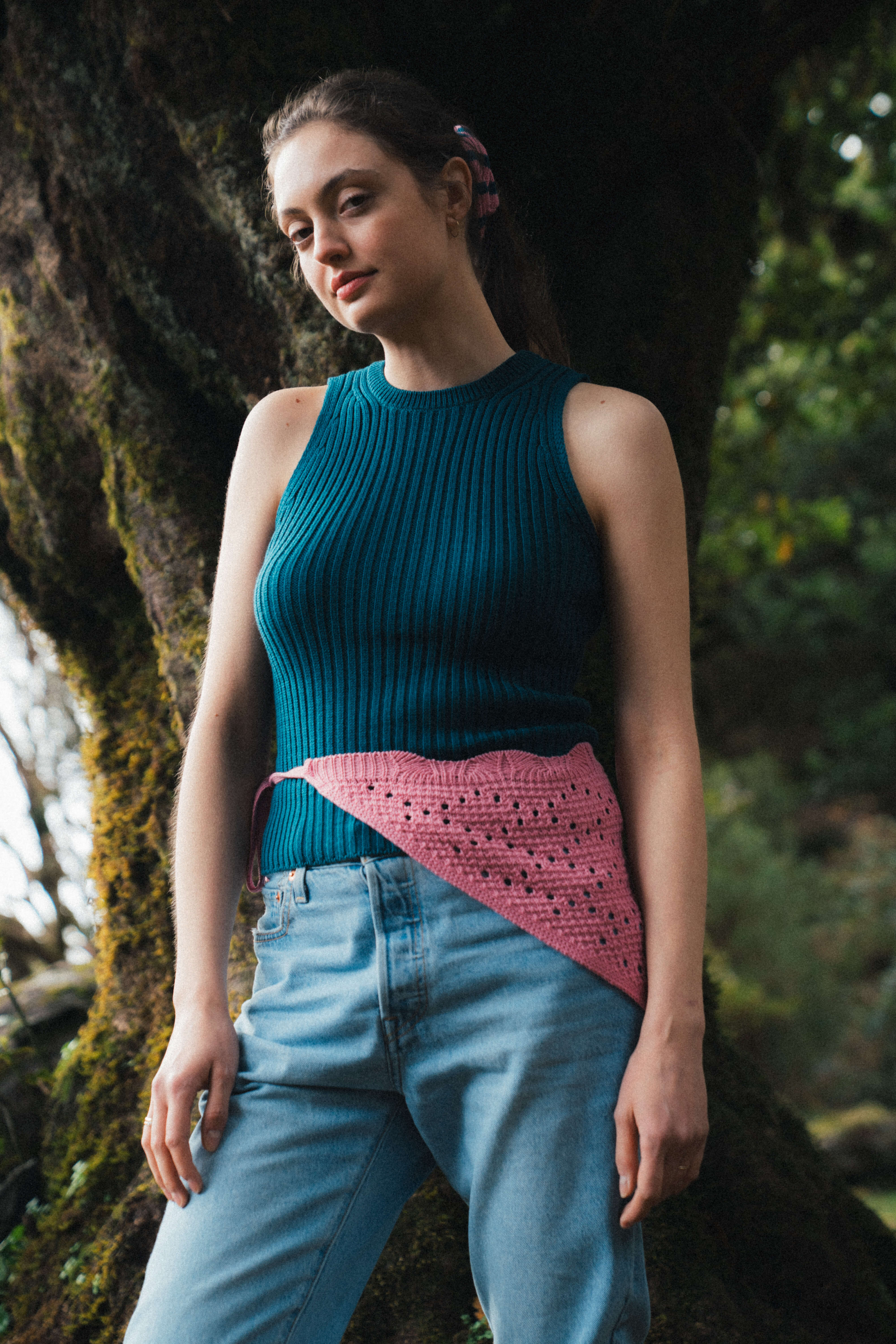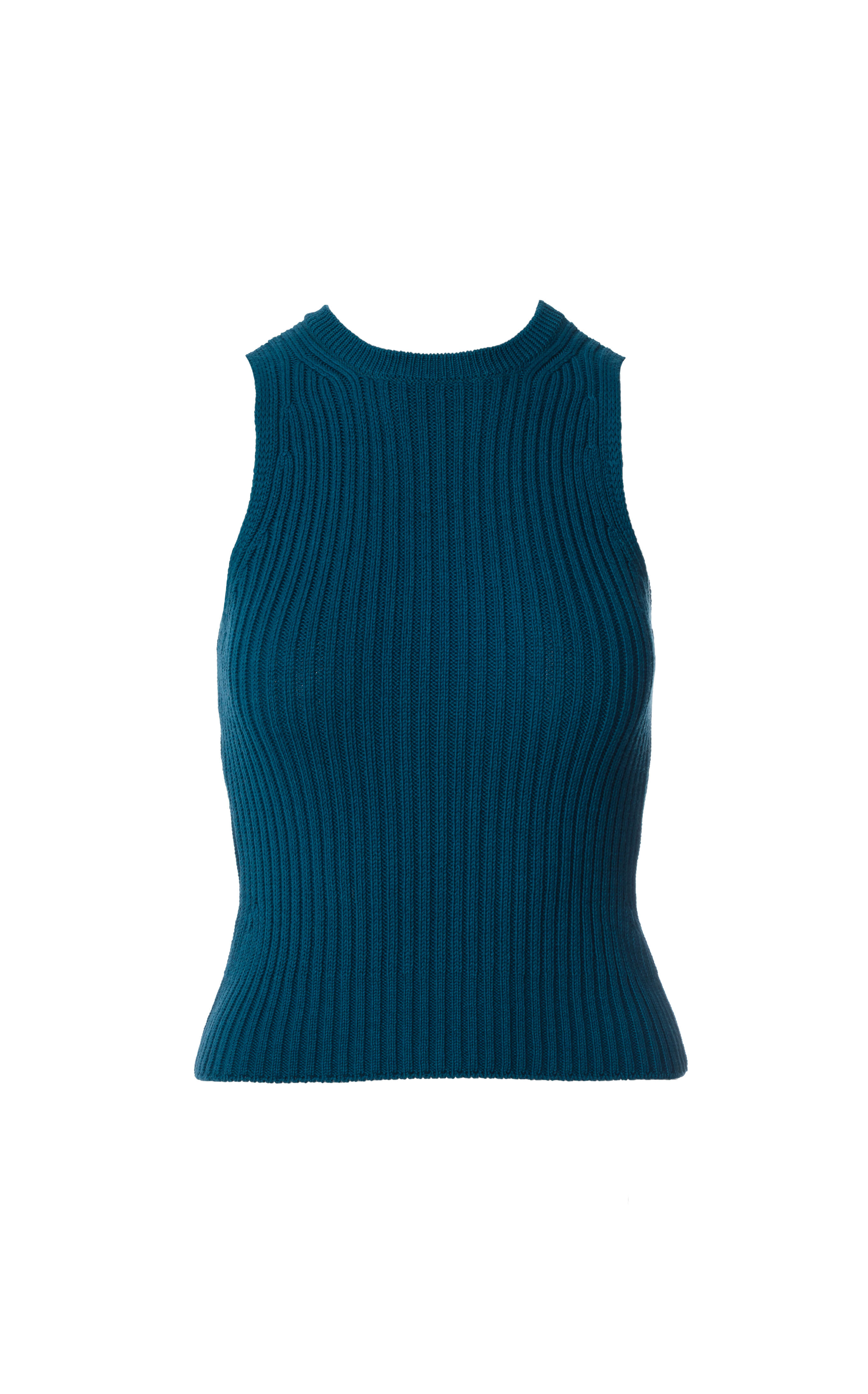 IMPALA RWS – petrolowy prążkowany top halter damski z wełny merino i bawełny