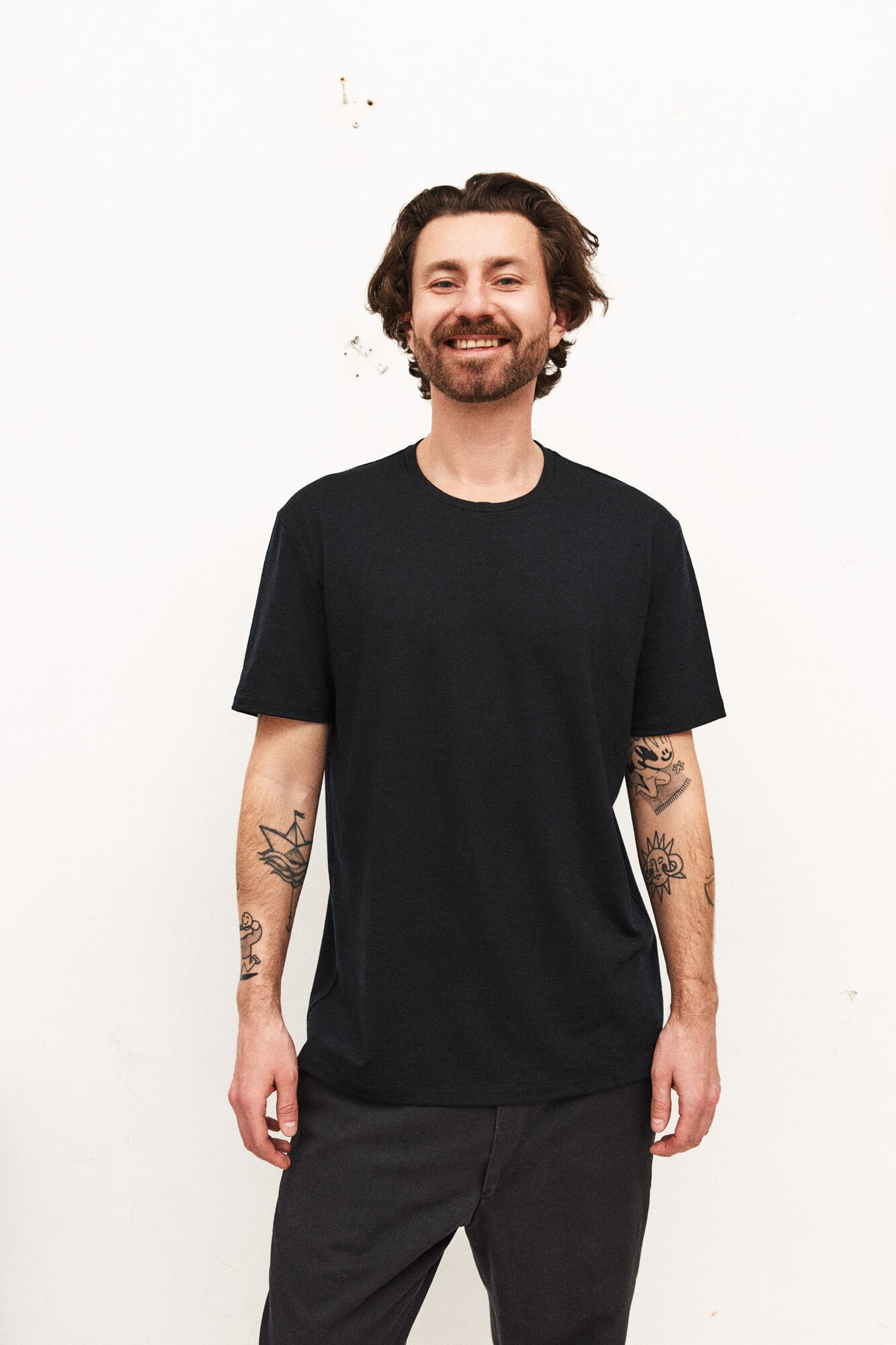 Jeśli poszukujesz koszulki, która idealnie wpasuje się w każdą sytuację, męski T-shirt .KAMELEON. z 100% wełny merino jest dla Ciebie. Klasyczny fason, luźny krój, krótkie rękawy i okrągły dekolt – to wszystko w ponadczasowej czerni, która doskonale dopasowuje się do sylwetki oraz każdej okazji.