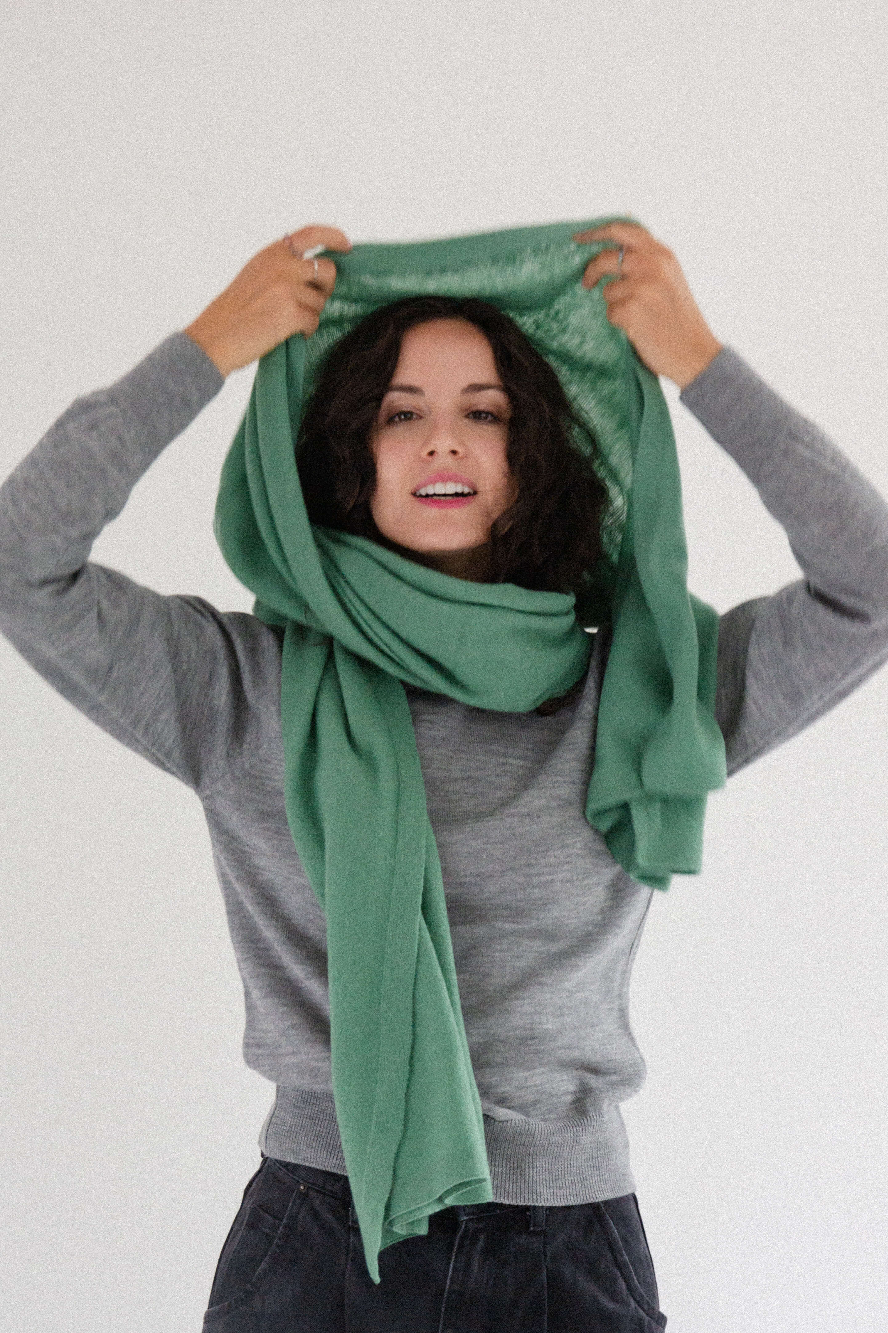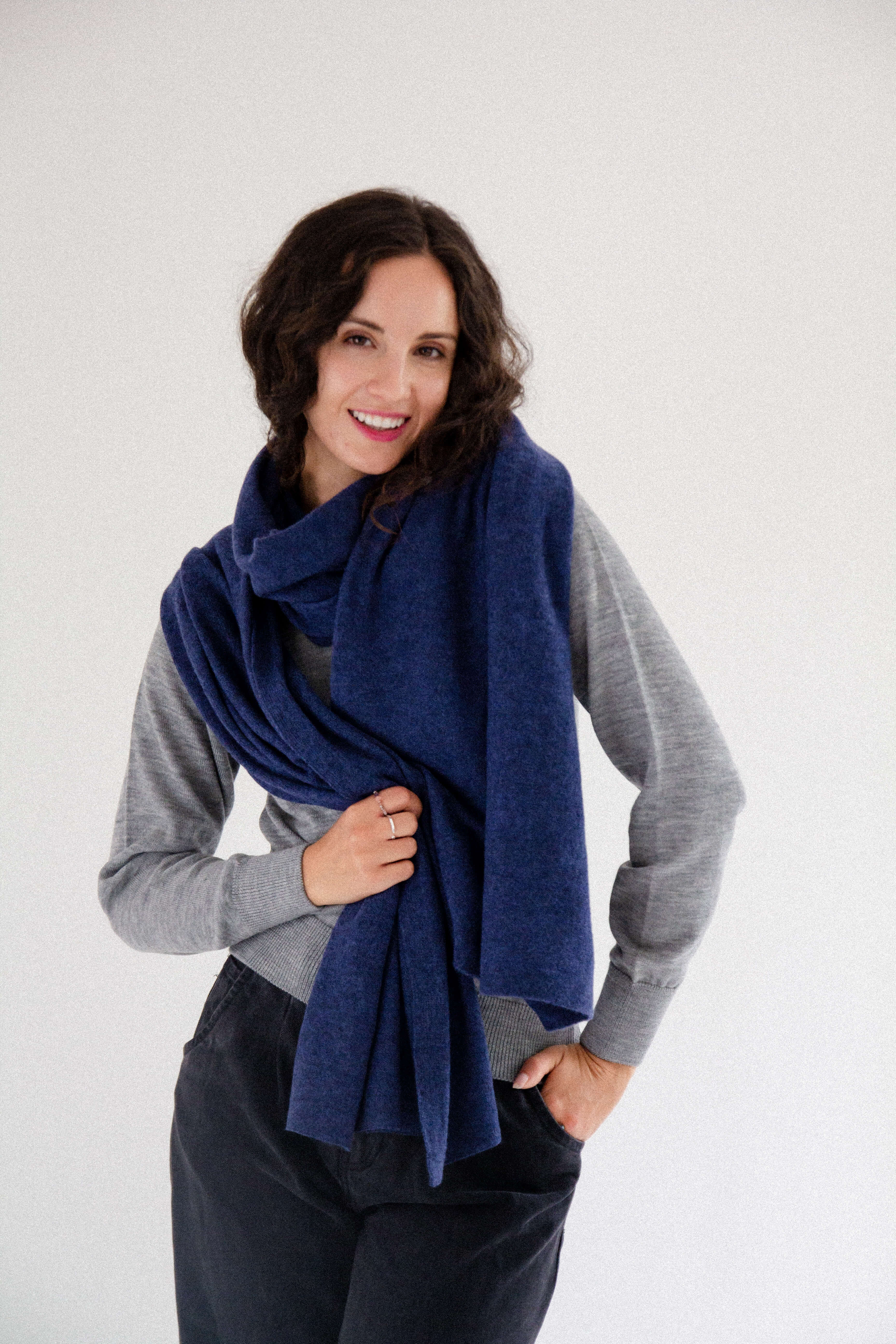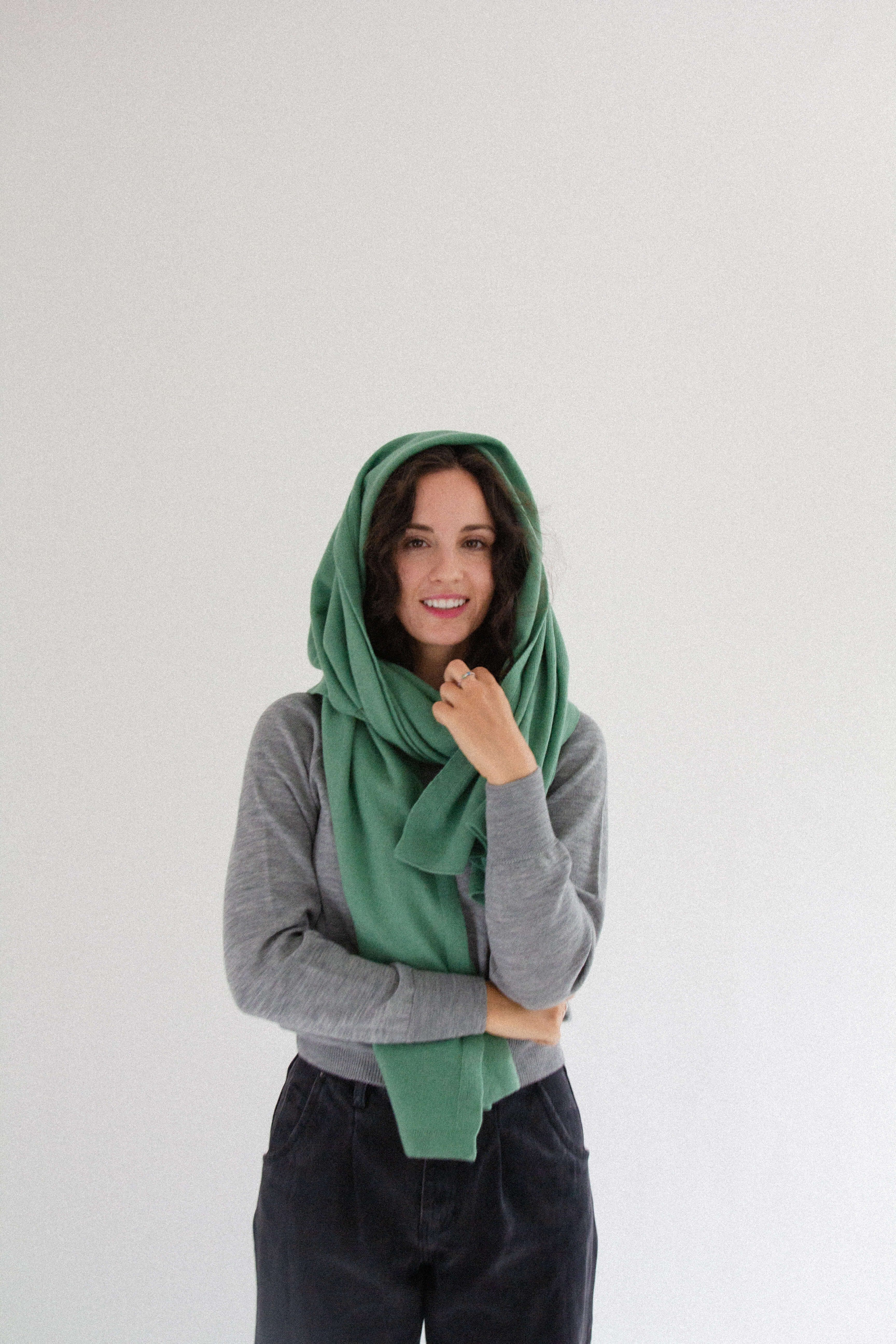 A generously oversized, cozy, warm yet incredibly lightweight wool scarf. Wrap it around your neck in countless ways, drape it over your head, or casually throw it over your shoulders like a shawl. It’s perfect for wrapping up in during autumn and winter, and in cool summer evenings or on camping trips, it doubles as a soft blanket.