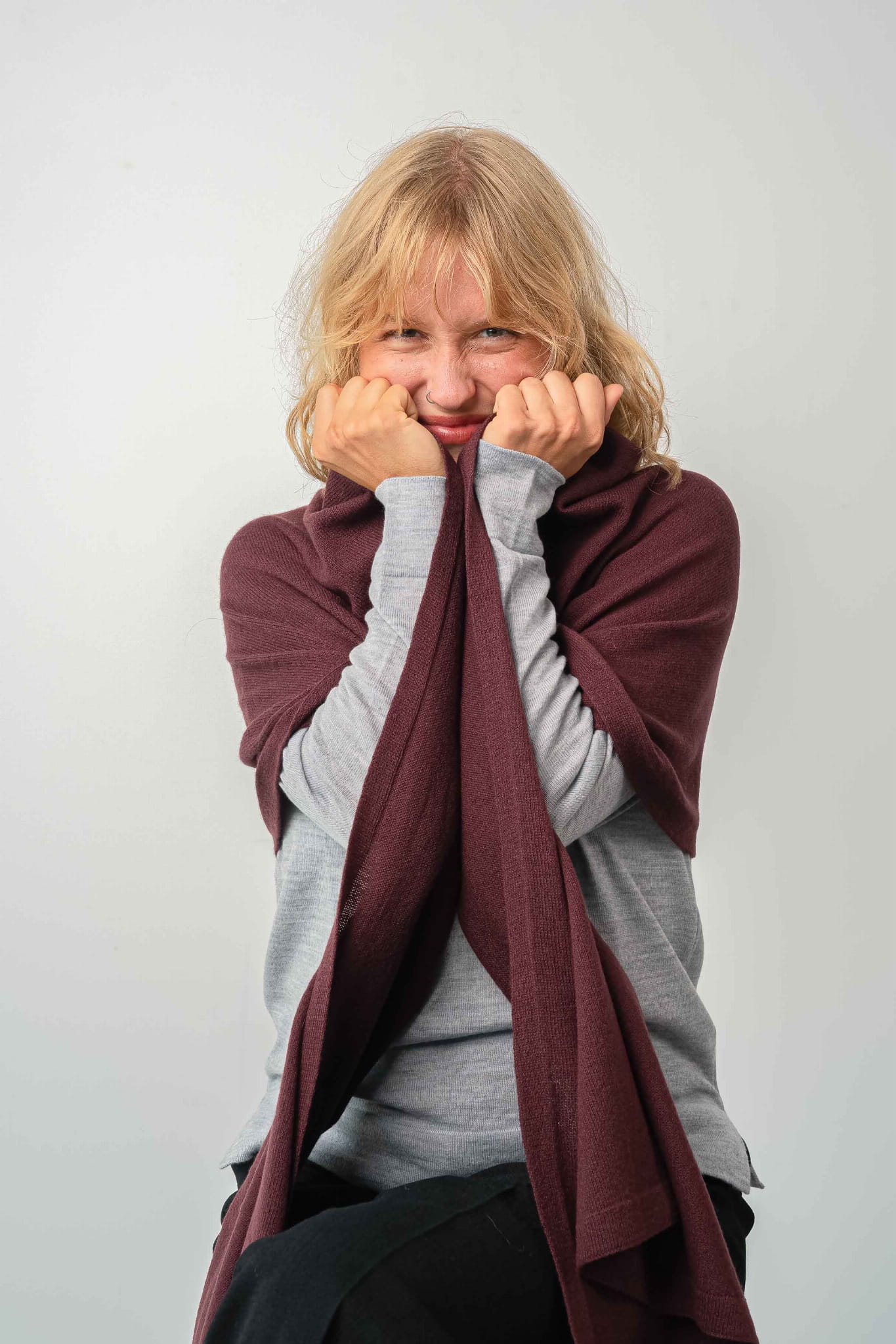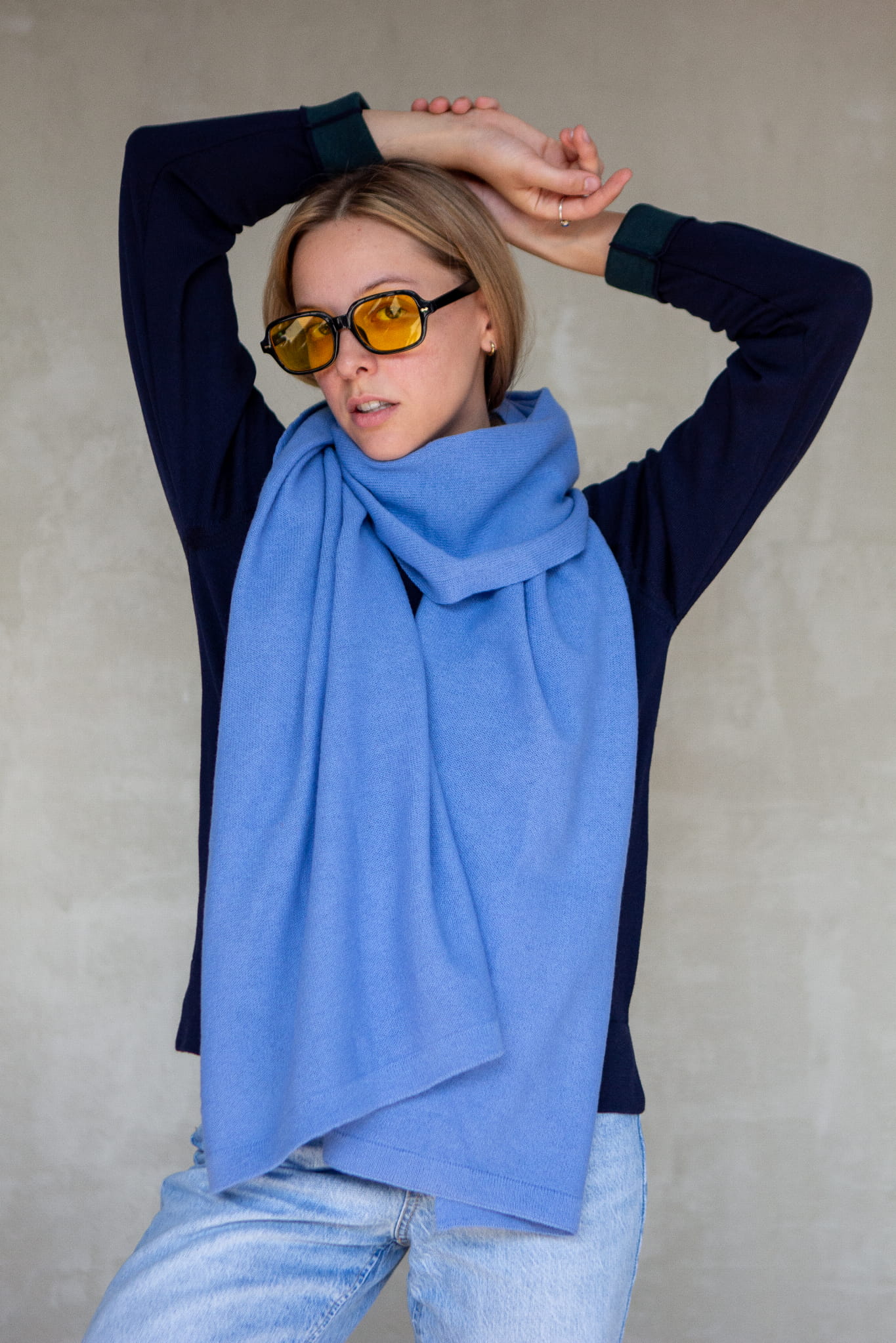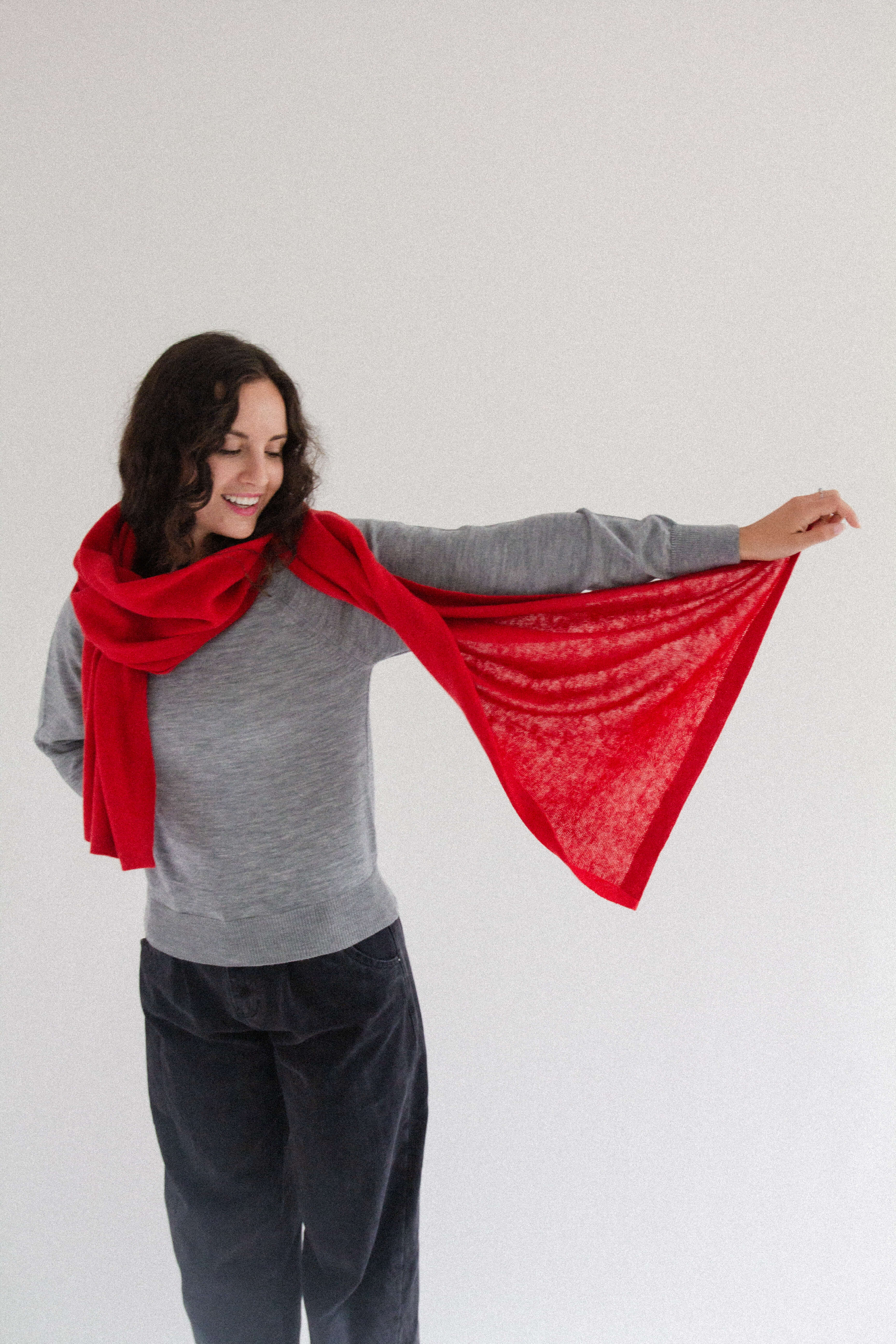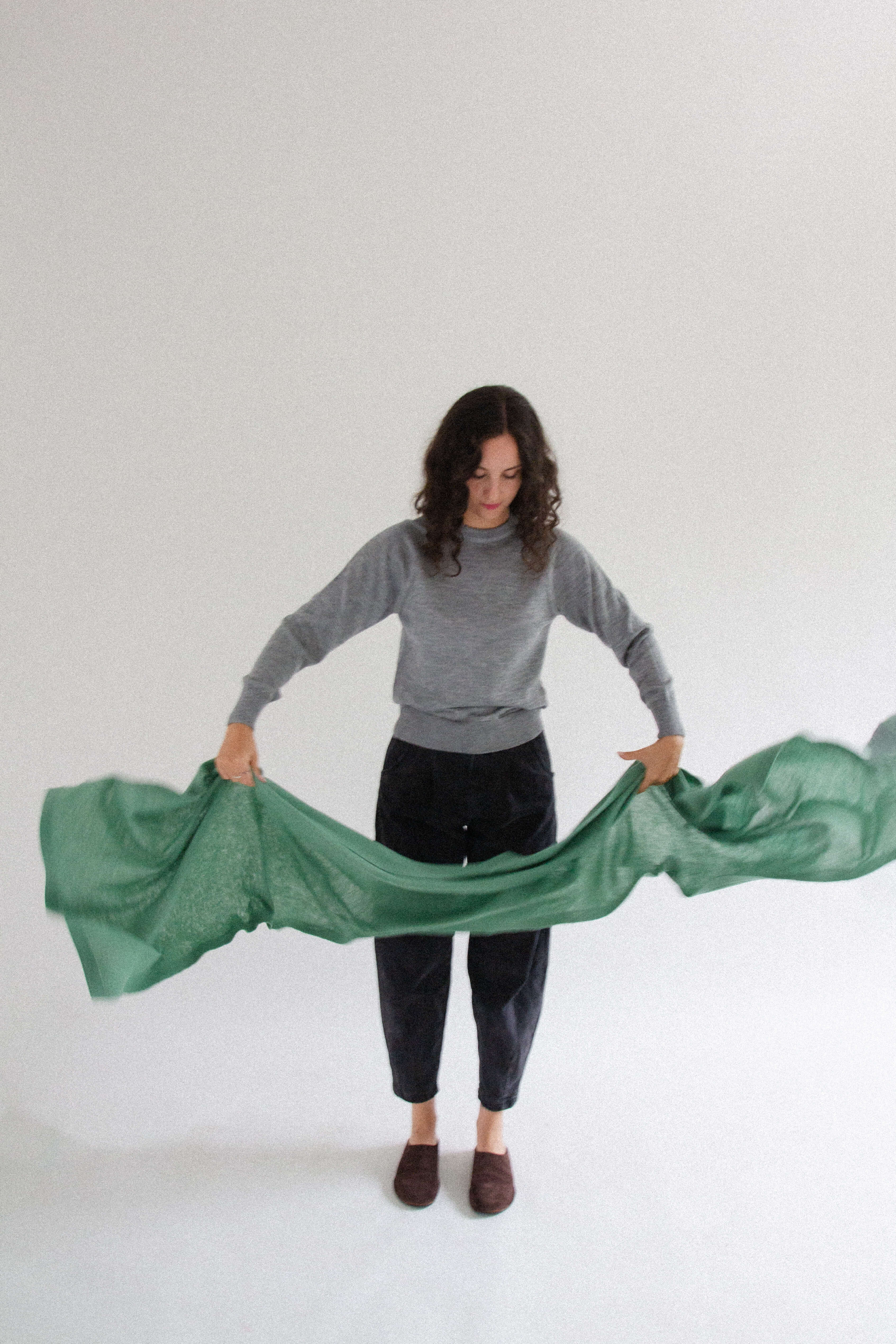 A generously oversized, cozy, warm yet incredibly lightweight wool scarf. Wrap it around your neck in countless ways, drape it over your head, or casually throw it over your shoulders like a shawl. It’s perfect for wrapping up in during autumn and winter, and in cool summer evenings or on camping trips, it doubles as a soft blanket.