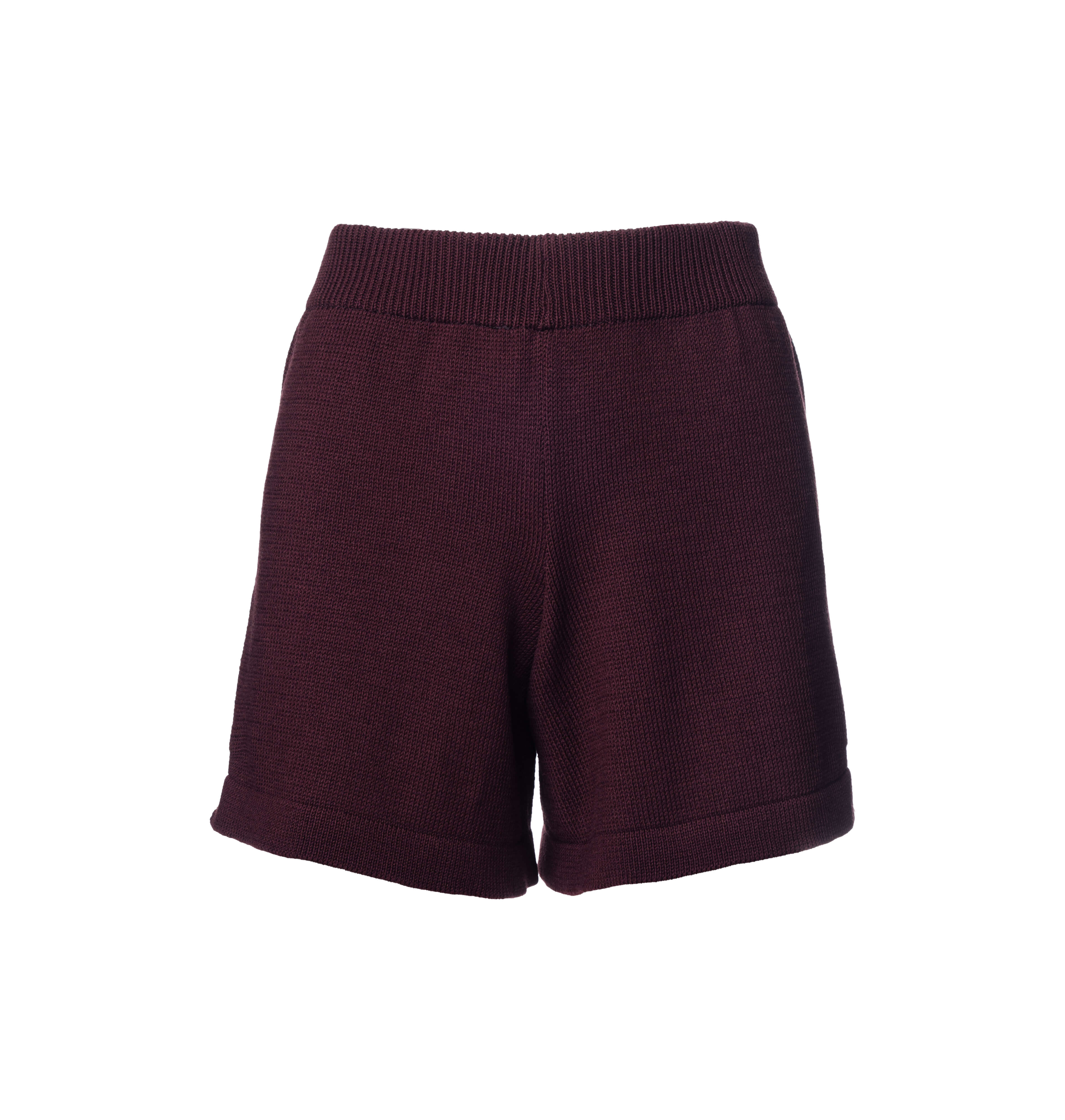 NANDU RWS - bordowe damskie dziane krótkie spodenki - szorty z wełny merino i bawełny