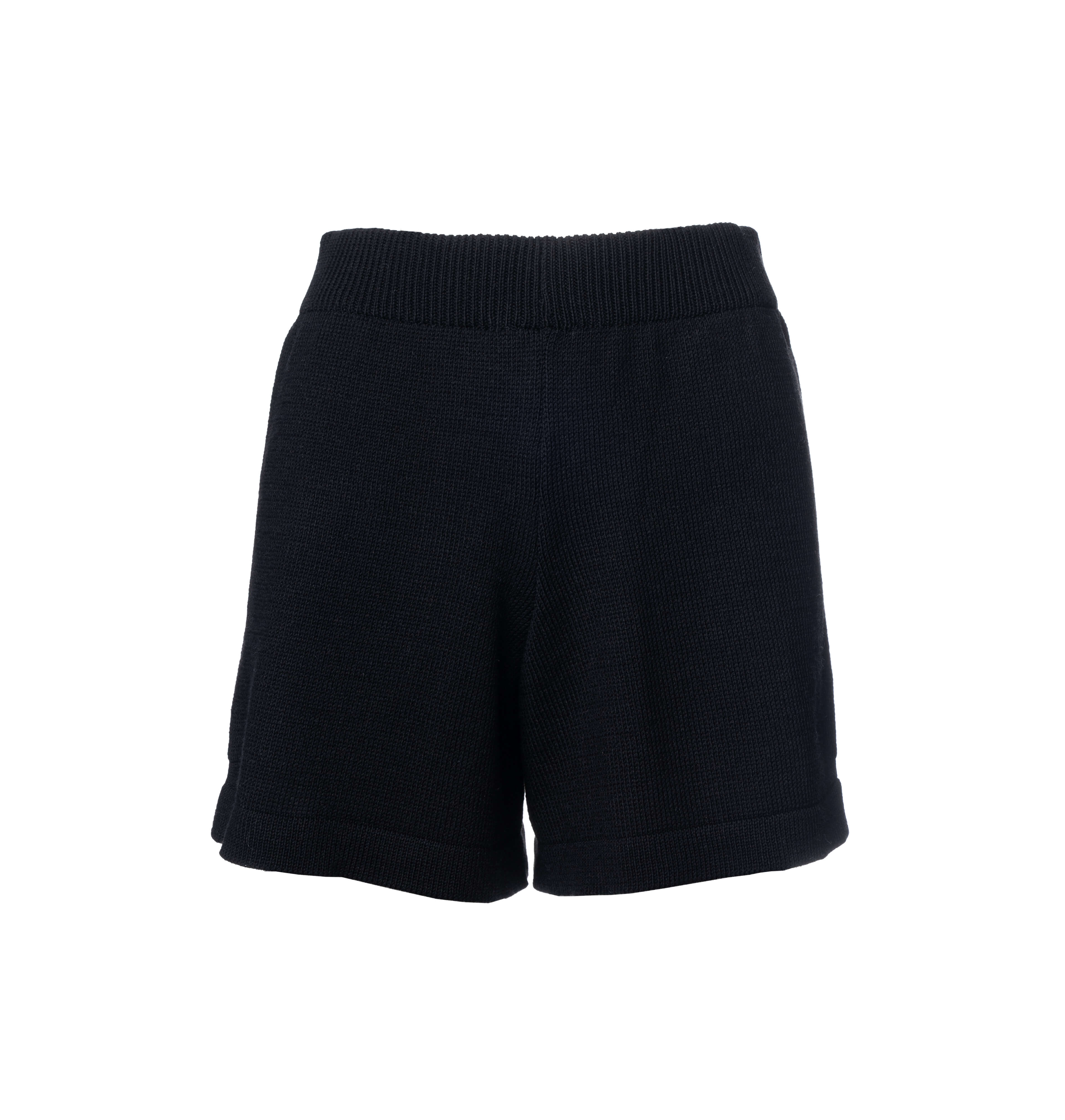 NANDU RWS - czarne damskie dziane krótkie spodenki - szorty z wełny merino i bawełny