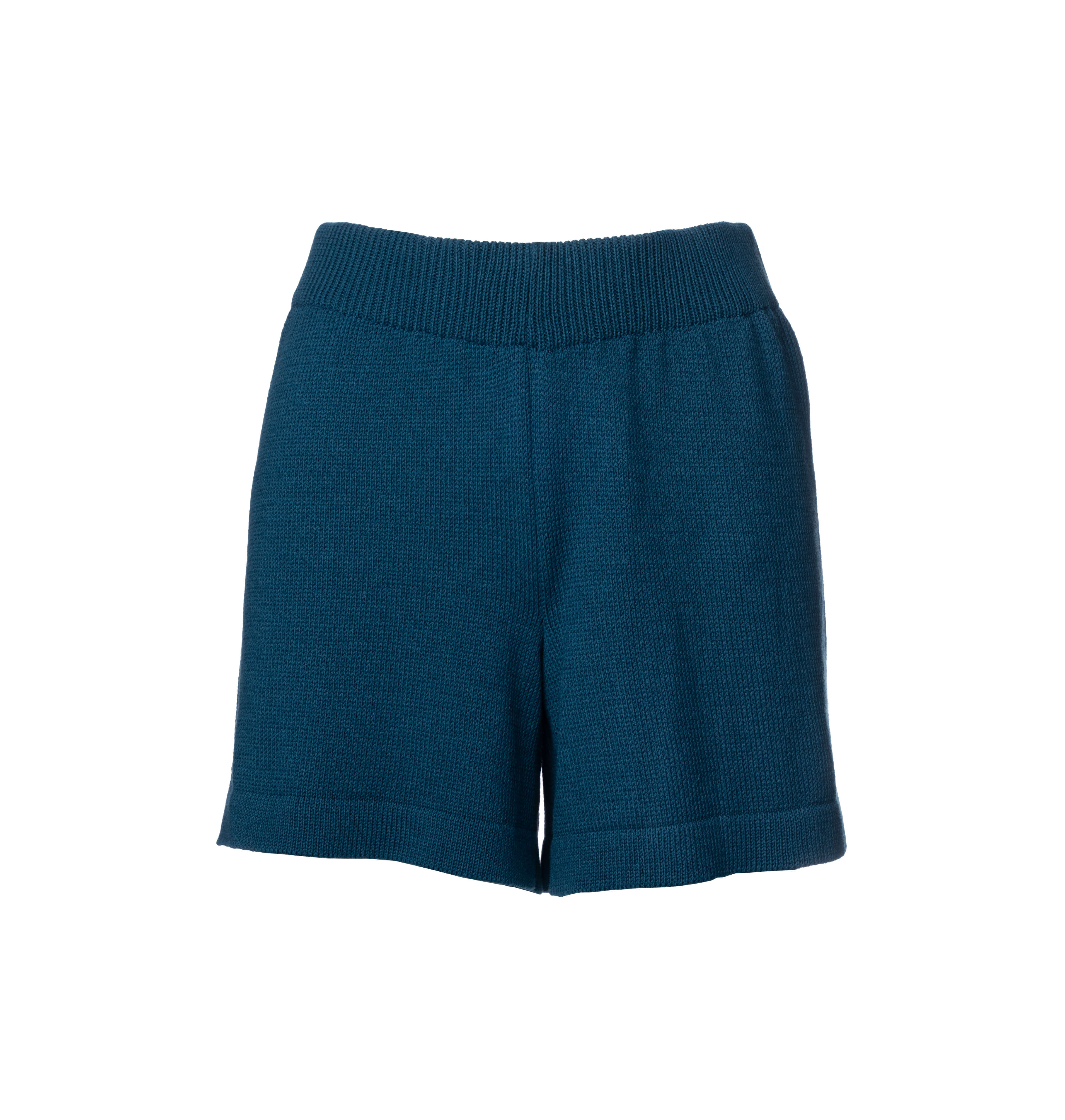 NANDU RWS - petrolowe damskie dziane krótkie spodenki - szorty z wełny merino i bawełny
