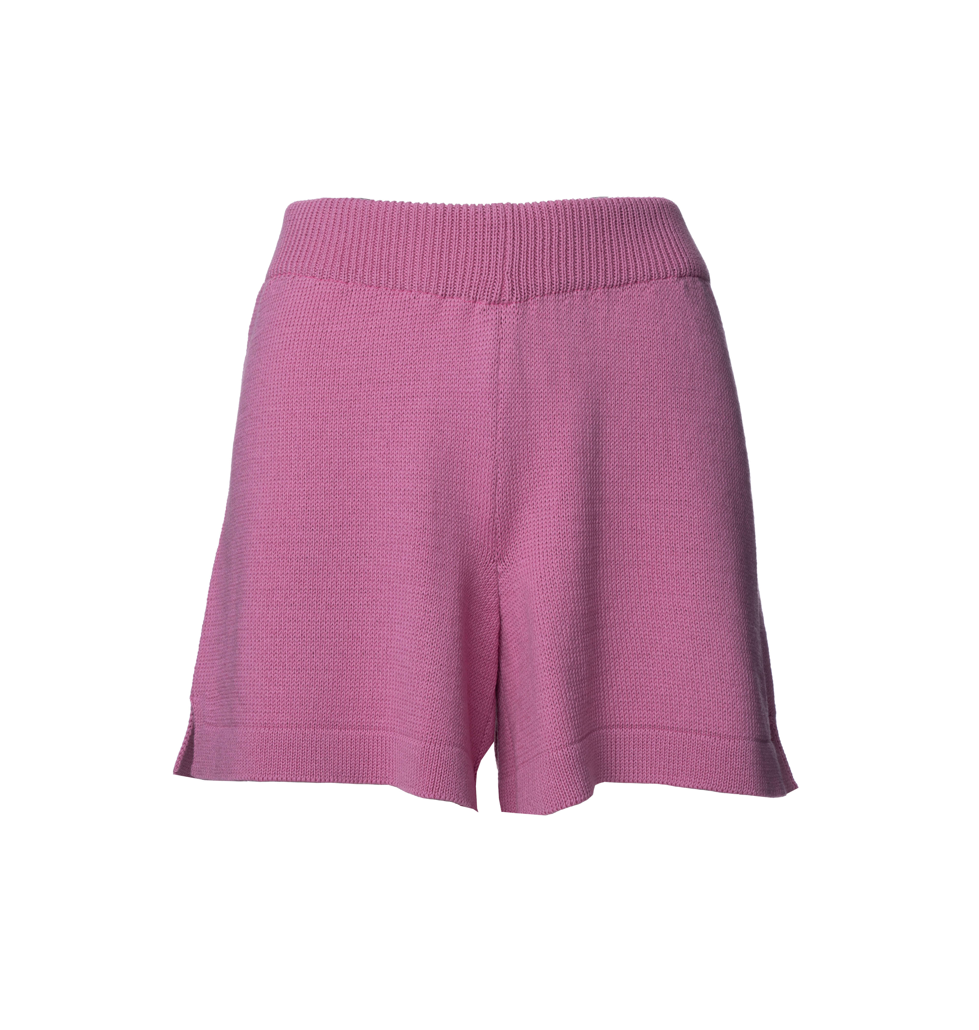NANDU RWS - różowe damskie dziane krótkie spodenki - szorty z wełny merino i bawełny