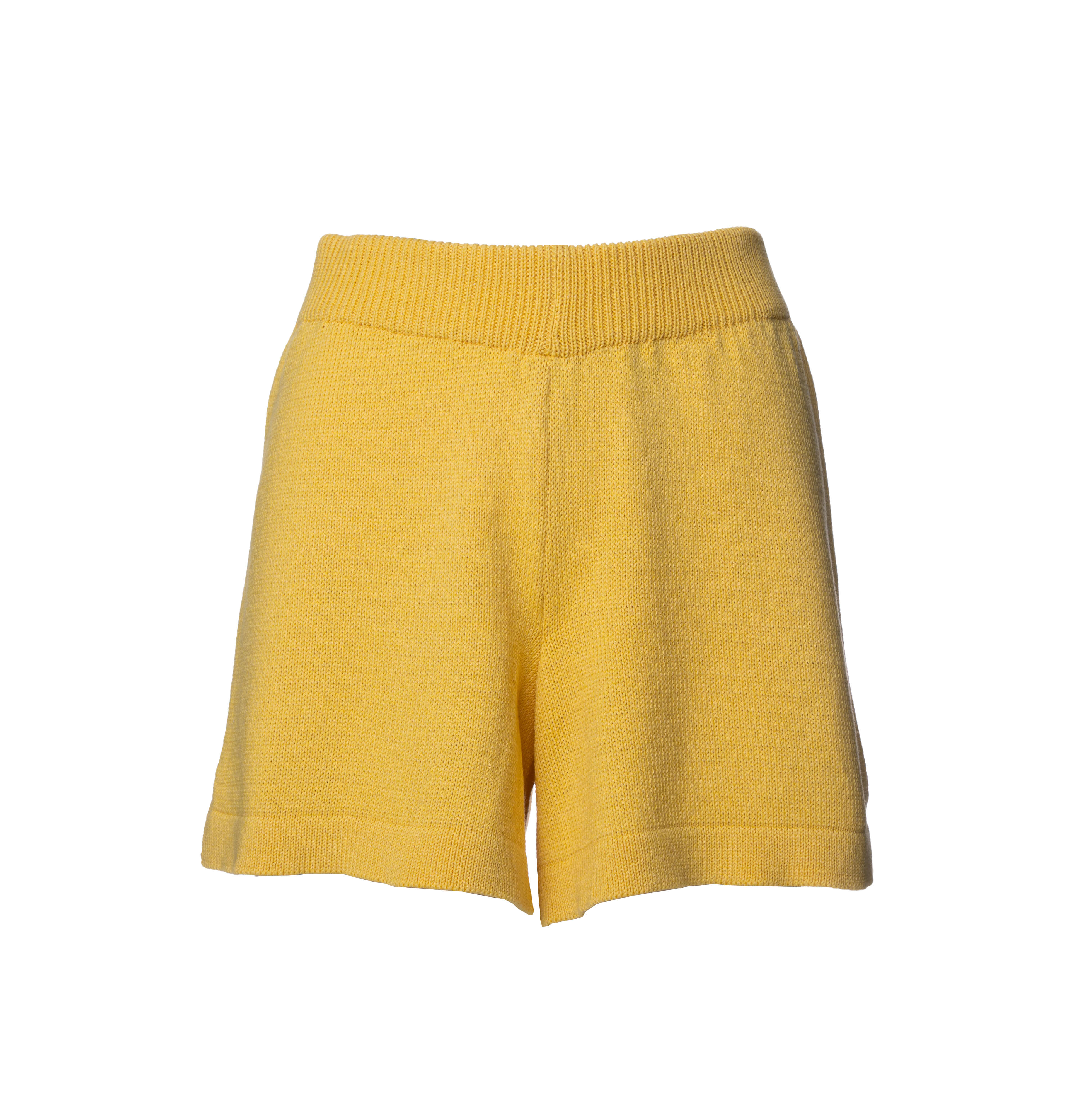 NANDU RWS - żółte damskie dziane krótkie spodenki - szorty z wełny merino i bawełny