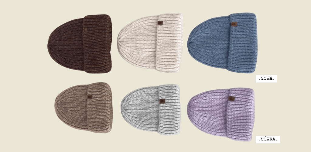 .SOWA. – obszerna, długa, wywijana i dobrze dopasowująca się do kształtu głowy. Najbardziej puchata (długi włos) i lekka jak chmurka. Najlepiej sprawdzi się w miejskich/podmiejskich okolicznościach, z uwagi na większą delikatność niż nasze przędze 100% merino.