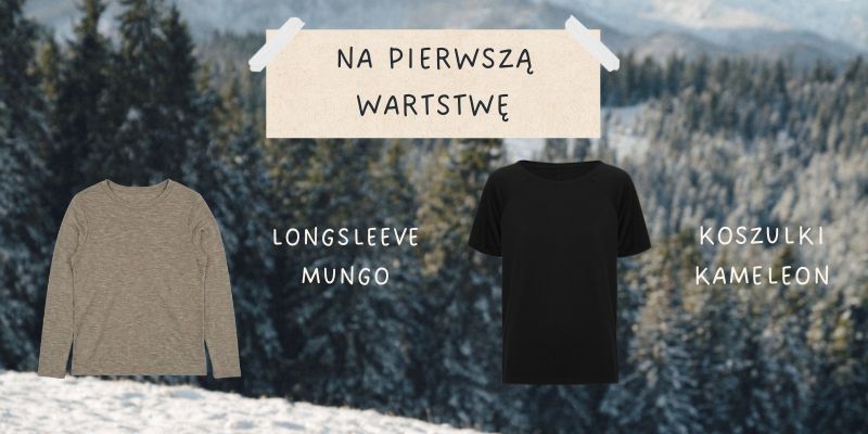 Tu najlepiej sprawdza się wełna merino. Longsleeve albo t-shirt z merino to baza, od której warto zacząć każdy zimowy zestaw – niezależnie od tego, czy planujesz narty, snowboard czy długi spacer.