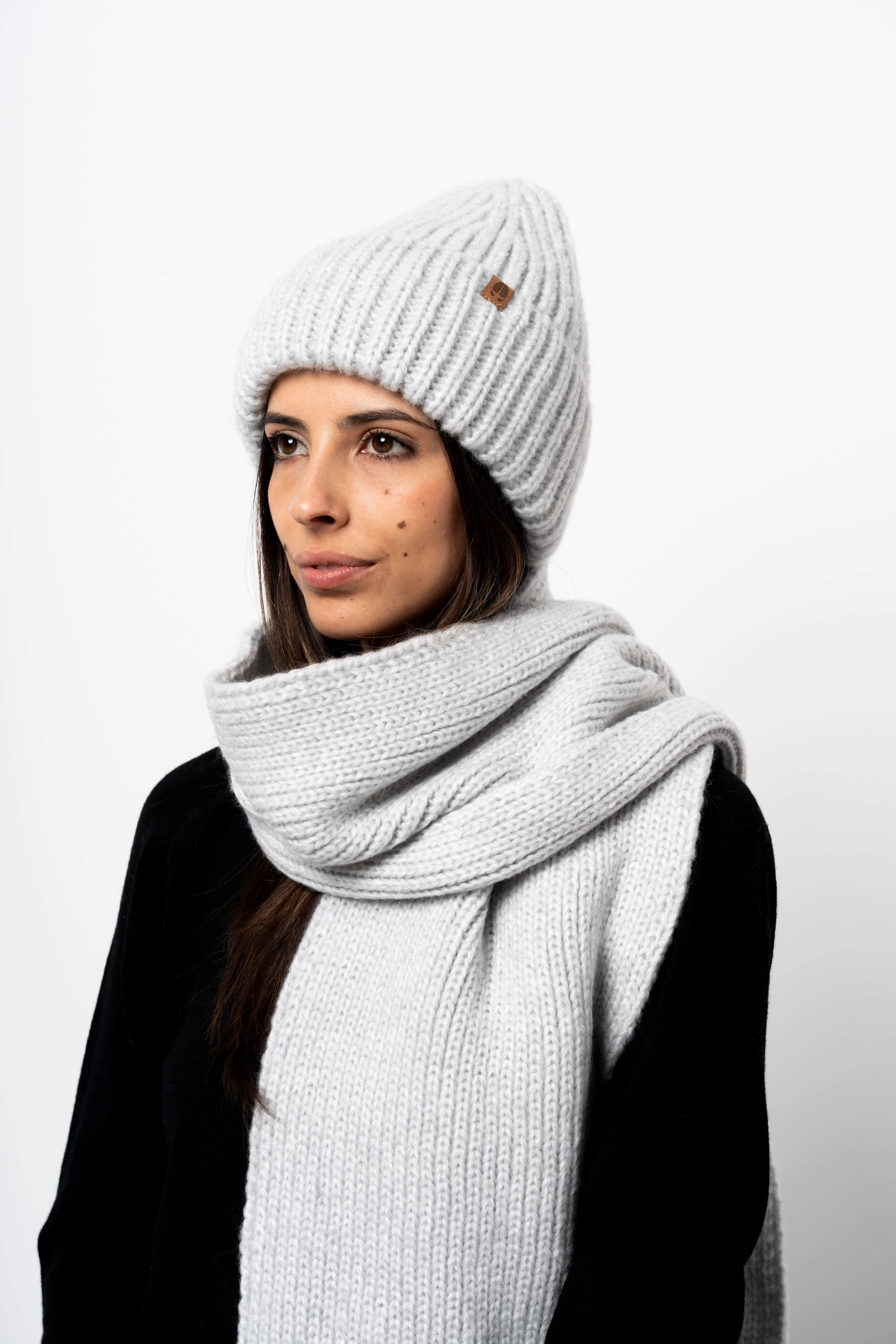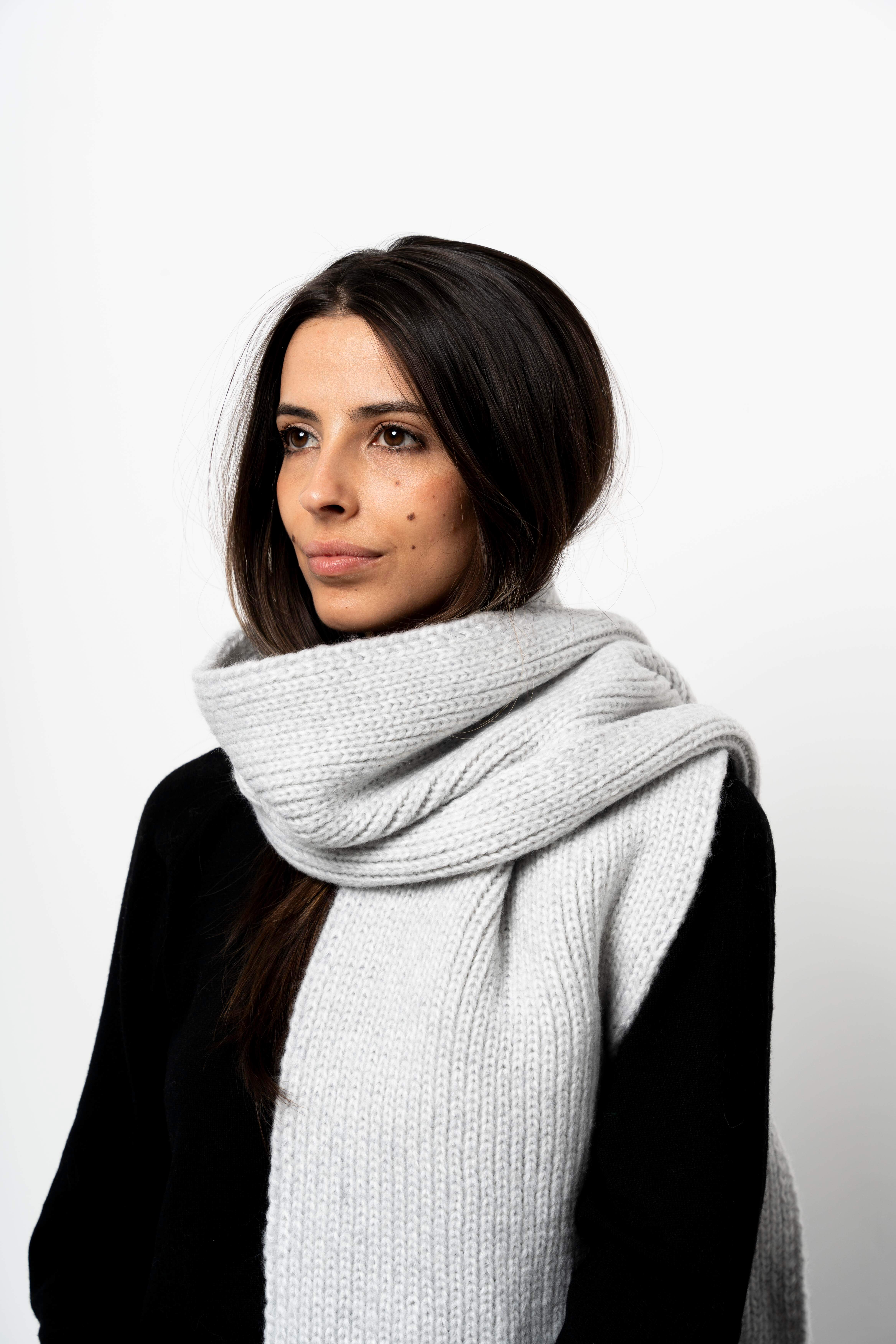 PUCHACZ OUTLET - duży mięsisty szalik wełna merino, bawełna czesana