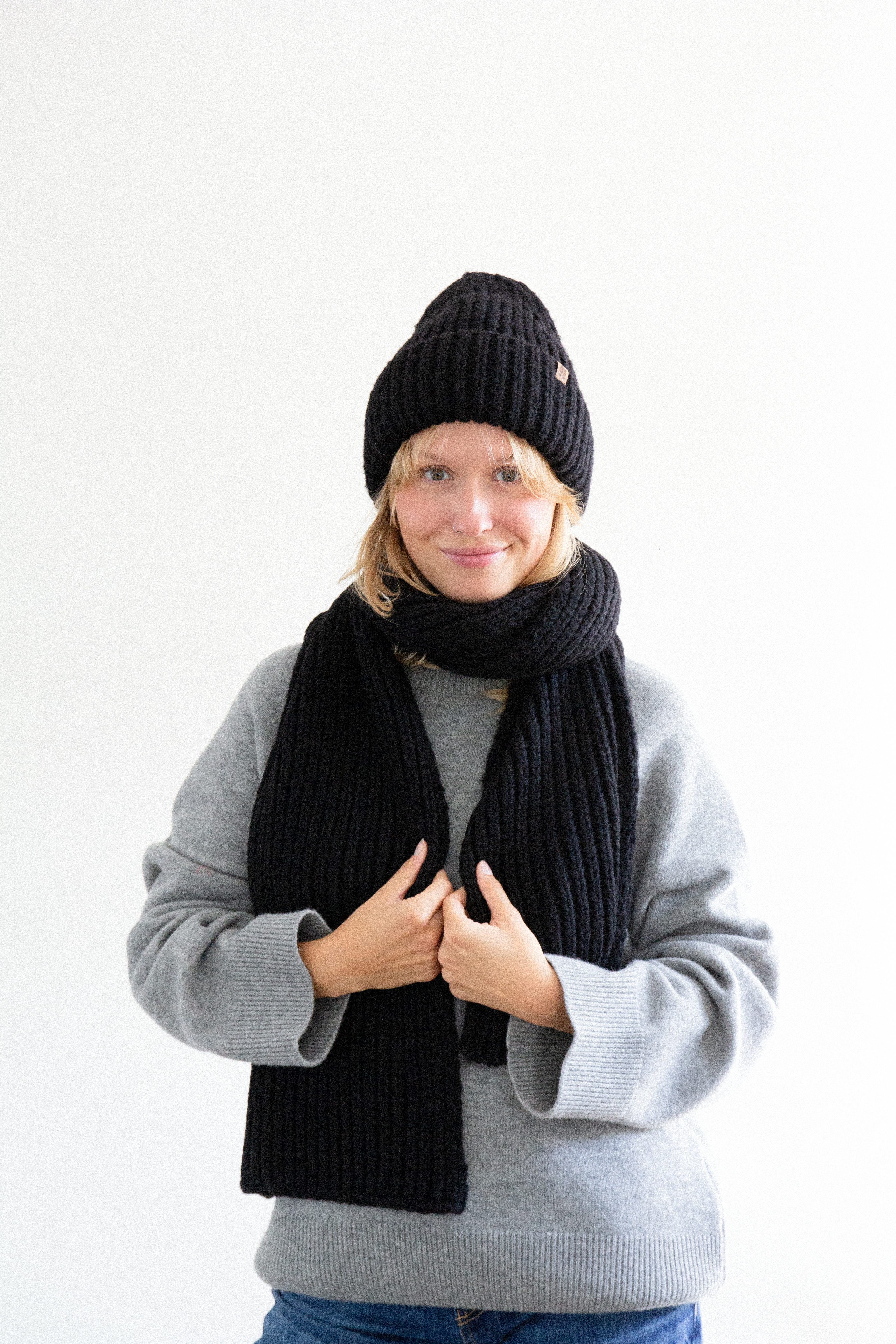 Ten wspaniały długi wełniany szalik wykonany jest z bardzo delikatnej, puszystej przędzy zrobionej specjalnie dla nas! To mieszanka etycznej wełny merino i zrównoważonej bawełny czesanej, co gwarantuje najwyższy standard bezpieczeństwa pod kątem pochodzenia surowców, jak i ich barwienia.