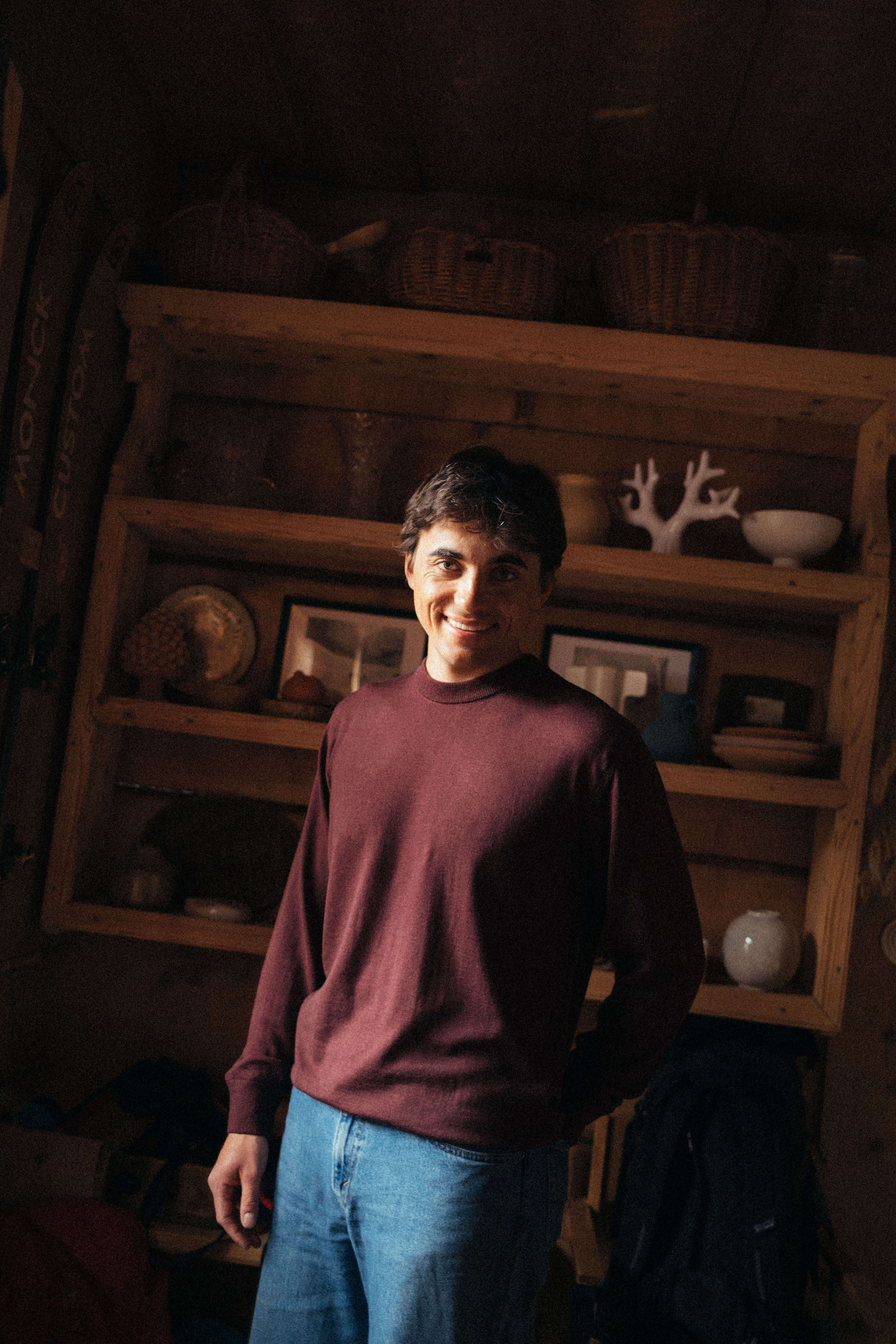 This wool sweater is a classic. It features a round neckline and goes with everything, for every occasion, and the 100% merino wool means you can also use it as a thermal base layer in the mountains and wear it directly against your skin (the wool yarn it is made from is very soft and does not itch). It insulates well against the cold even though it is not thick, while in summer it breathes beautifully and keeps you comfortable on cooler days. It takes up very little space, making it a great travel companion, and you can wear it many times without washing — merino wool does not absorb odours easily and responds well to airing. .RACCOON. is a staple of a timeless capsule wardrobe.