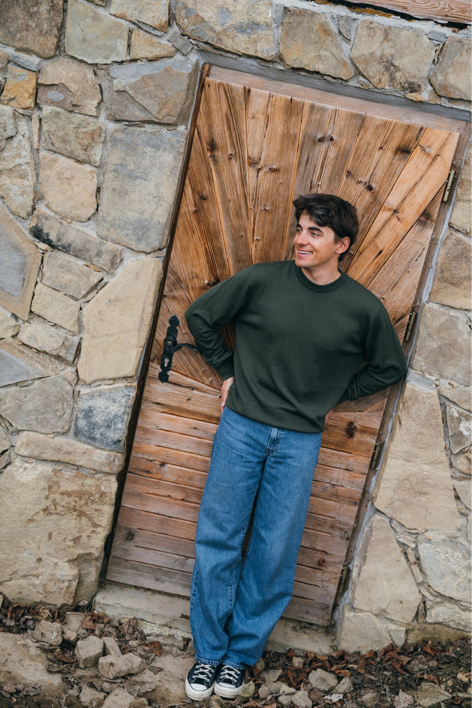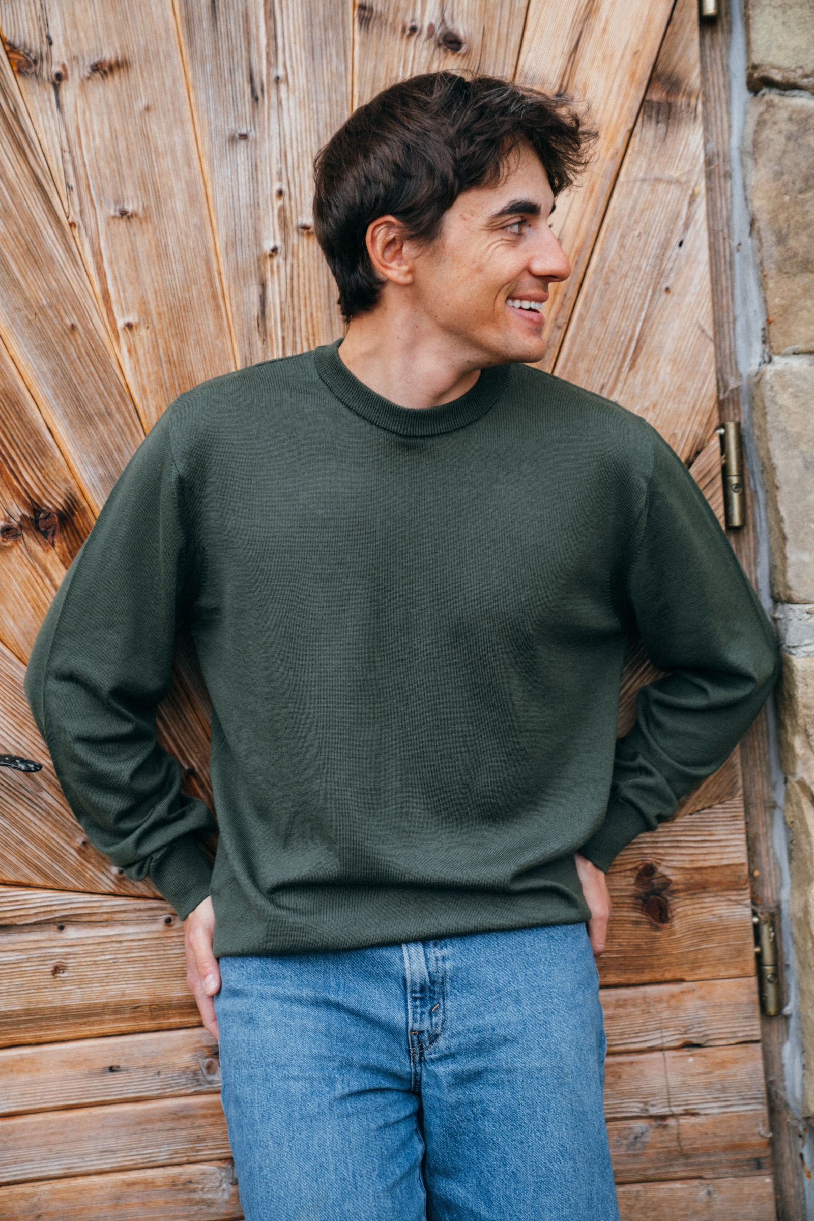 OLIVE GREEN MEN’S SWEATER - 100% merino wool RWS
