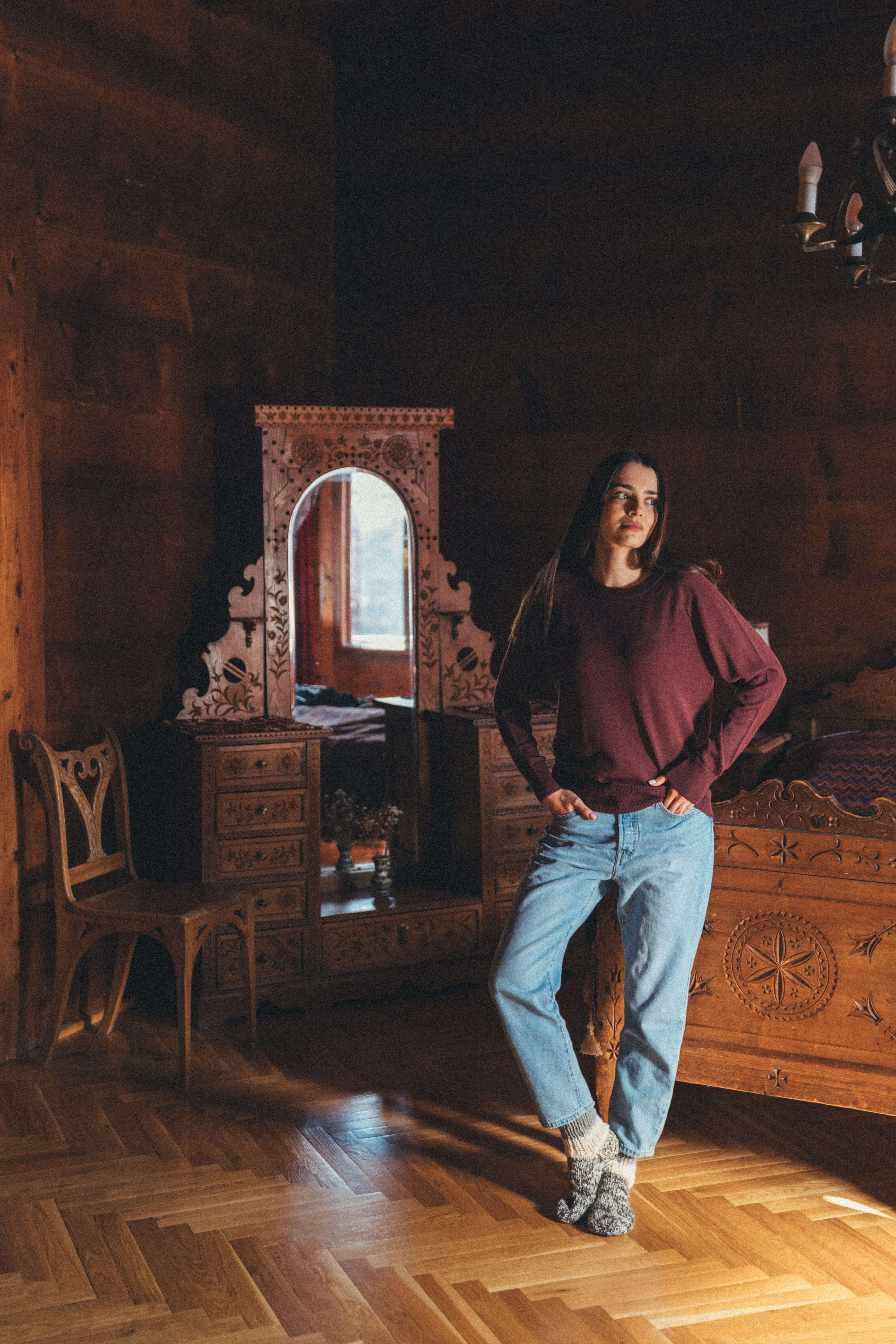 This wool sweater is a classic. It features a round neckline and raglan sleeves, which means it drapes well whether you have narrow or broad shoulders, a smaller or fuller bust. It goes with everything, for every occasion, and the 100% merino wool means you can also use it as a thermal base layer in the mountains and wear it directly against your skin (the wool yarn it is made from is very soft and does not itch). It insulates well against the cold even though it is not thick, while in summer it breathes beautifully and keeps you comfortable on cooler days. It takes up very little space, making it a great travel companion, and you can wear it many times without washing — merino wool does not absorb odours easily and responds well to airing. .RACCOON DOG. is a staple of a timeless capsule wardrobe.