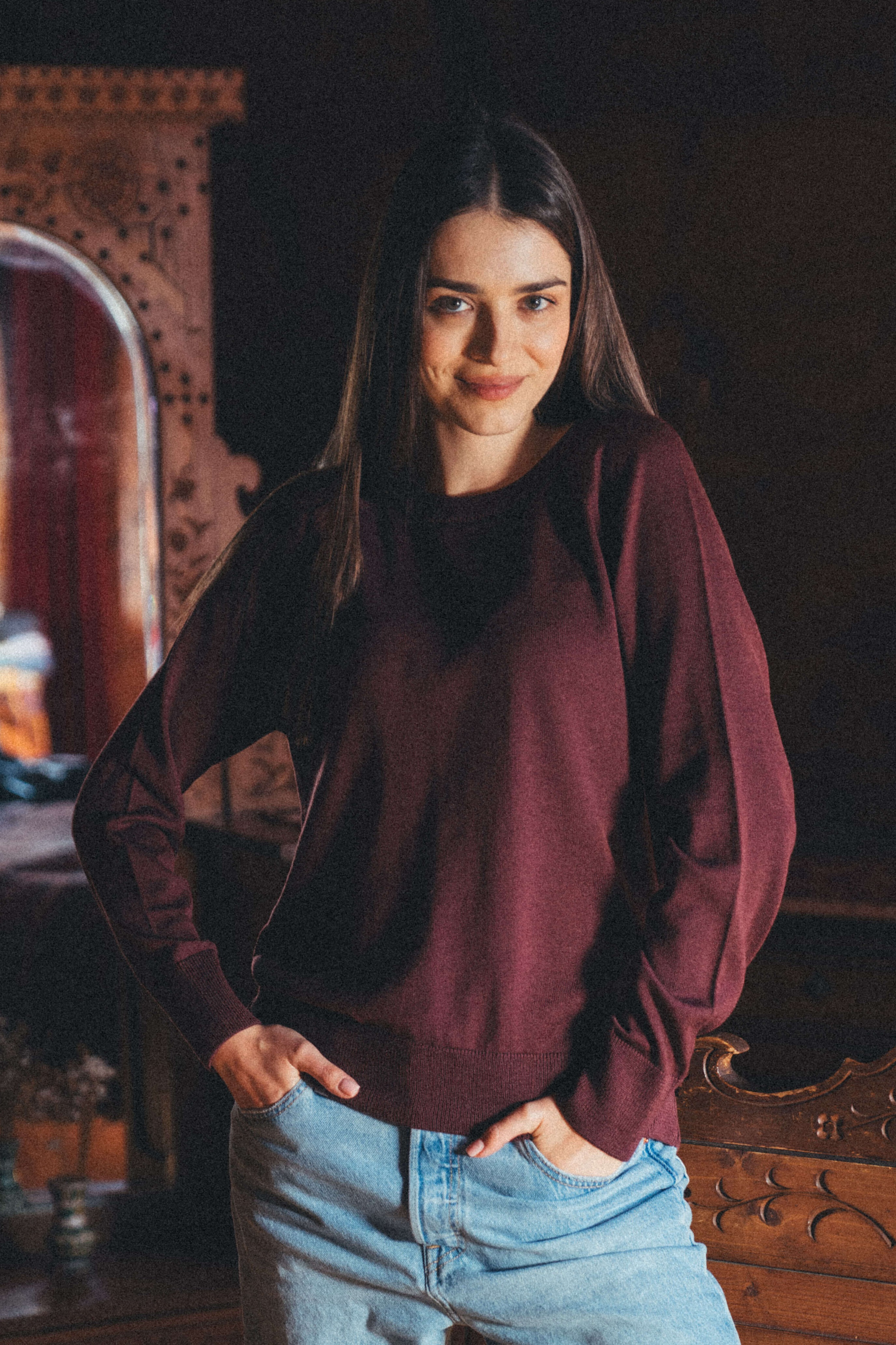 CLARET WOMEN’S SWEATER - 100% merino wool RWS